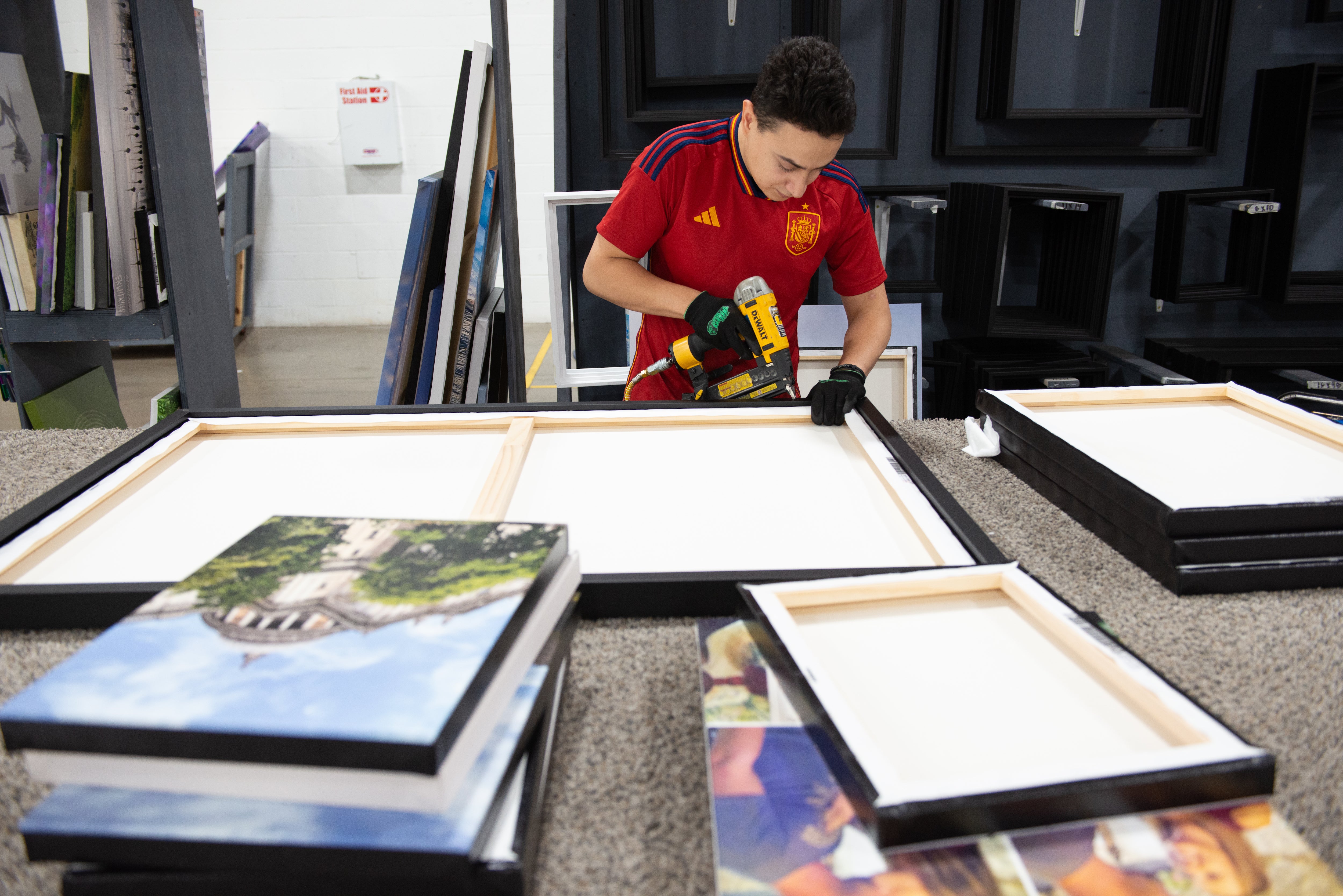 Our genuine artist quality canvas, hand stretched by our experts on FSC Certified, knot, sap and warp free SPF wooden frames, complete with hanging hardware installed. The handcrafted wood framework makes the canvas stay intact for decades.