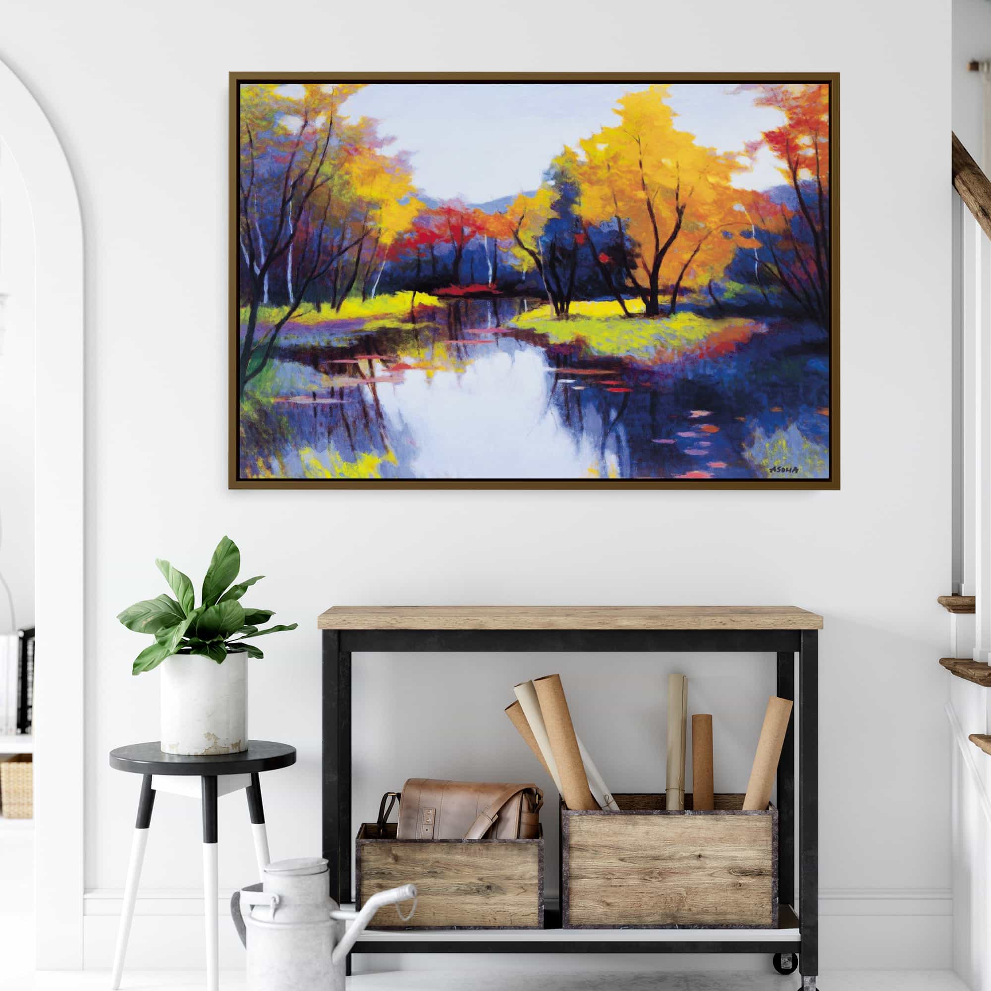 The artwork is beautiful. And beautifully framed. It’s the perfect size for over the fireplace and it really brightens the room. I’m very happy with it.