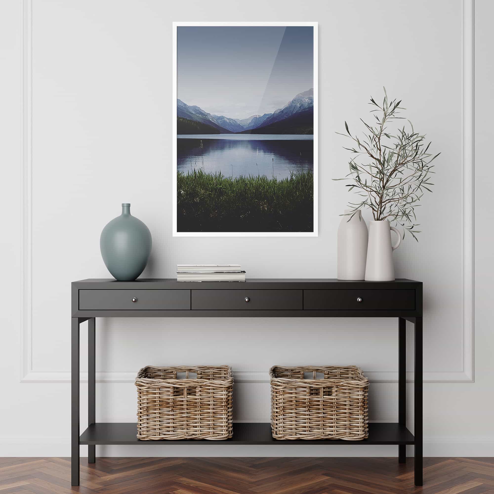 The highest quality Fine Art photo paper, in our 100% real wood frame with a professional matte black finish, and hanging hardware installed. Rubber bumpers also included to protect your wall, and make sure your framed print remains straight.