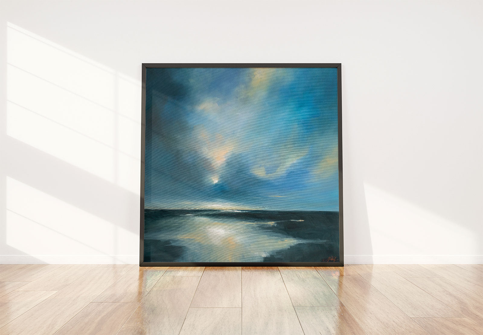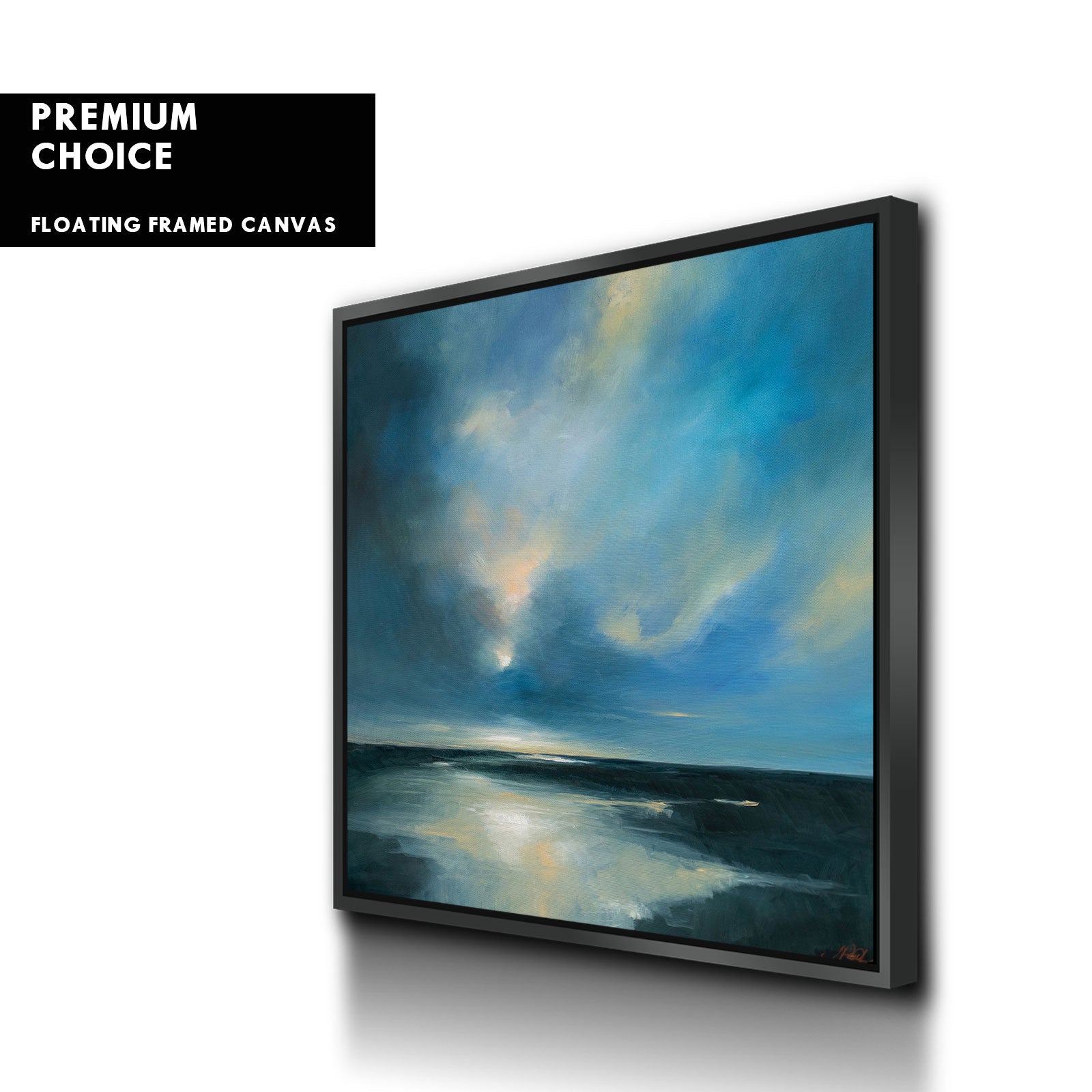 Our premium stretched canvas inserted perfectly in a Roma Moulding™ 100% real Pine Wood frame, with a professional matte black finish, and hanging hardware installed. Our Floater Frames are 5 times sanded & finished without toxins or chipping, for a museum quality framed artwork.