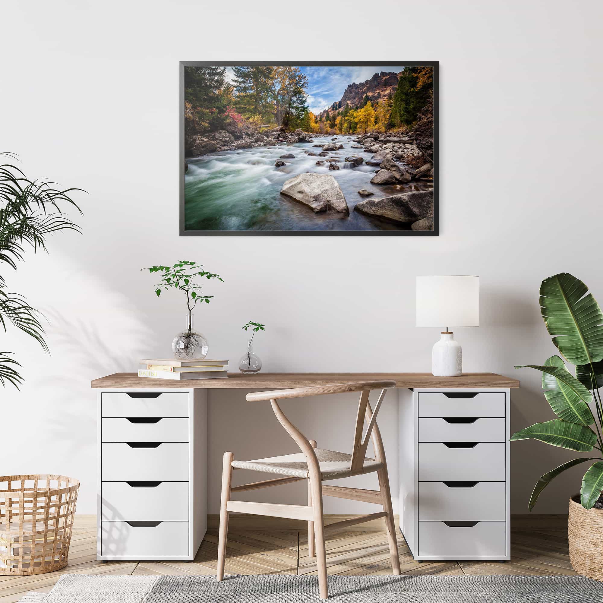 The highest quality Fine Art photo paper, in our 100% real wood frame with a professional matte black finish, and hanging hardware installed. Rubber bumpers also included to protect your wall, and make sure your framed print remains straight.