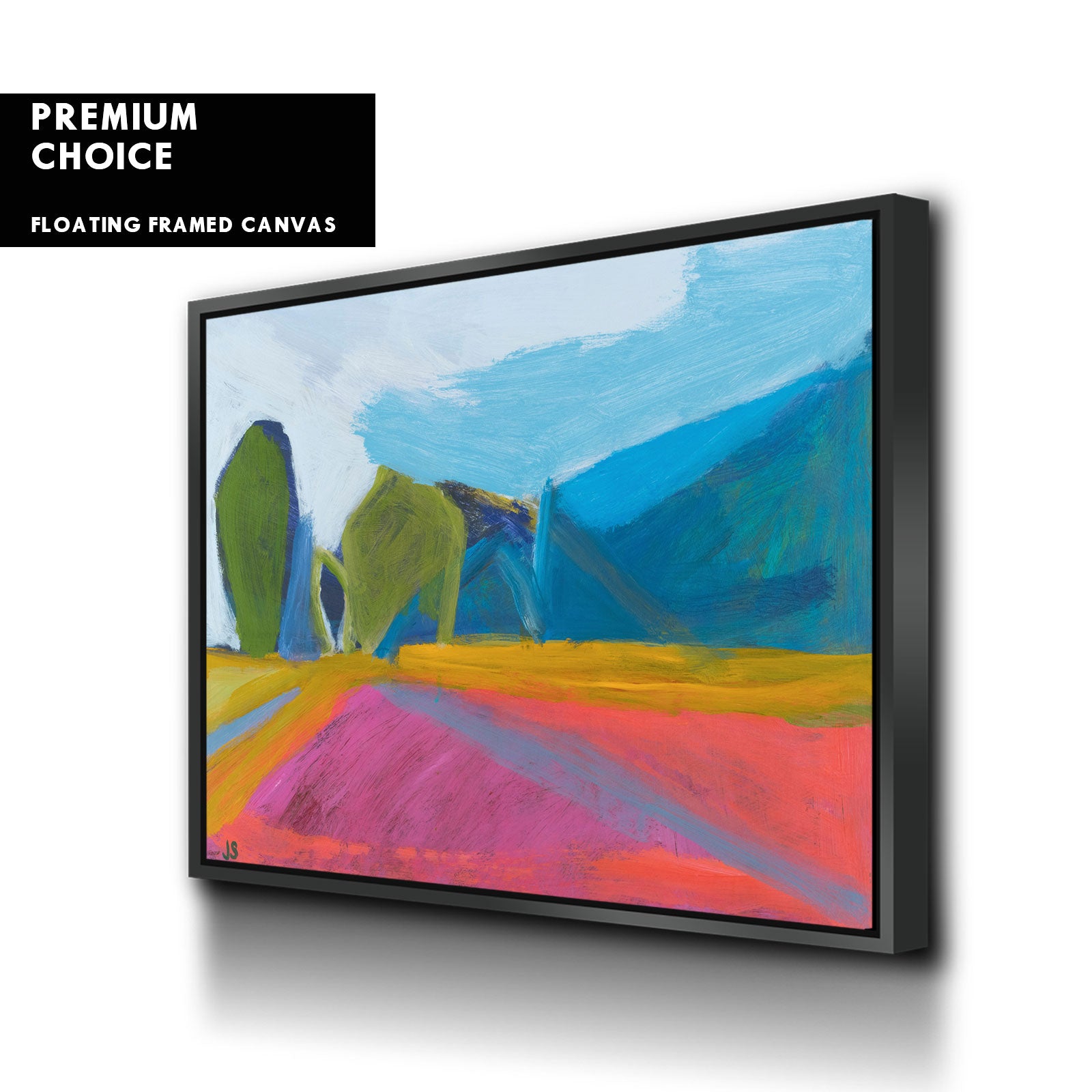 Our premium stretched canvas inserted perfectly in a Roma Moulding™ 100% real Pine Wood frame, with a professional matte black finish, and hanging hardware installed. Our Floater Frames are 5 times sanded & finished without toxins or chipping, for a museum quality framed artwork.