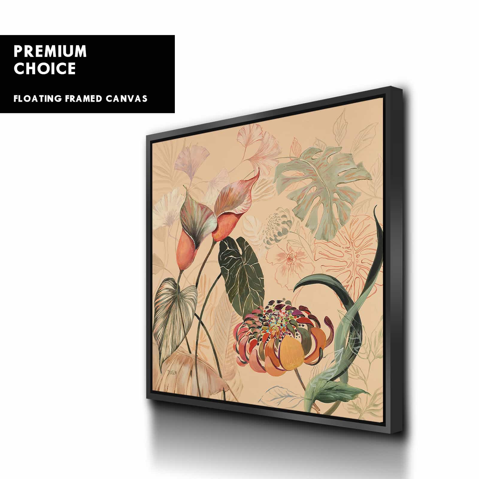 Our premium stretched canvas inserted perfectly in a Roma Moulding™ 100% real Pine Wood frame, with a professional matte black finish, and hanging hardware installed. Our Floater Frames are 5 times sanded & finished without toxins or chipping, for a museum quality framed artwork.
