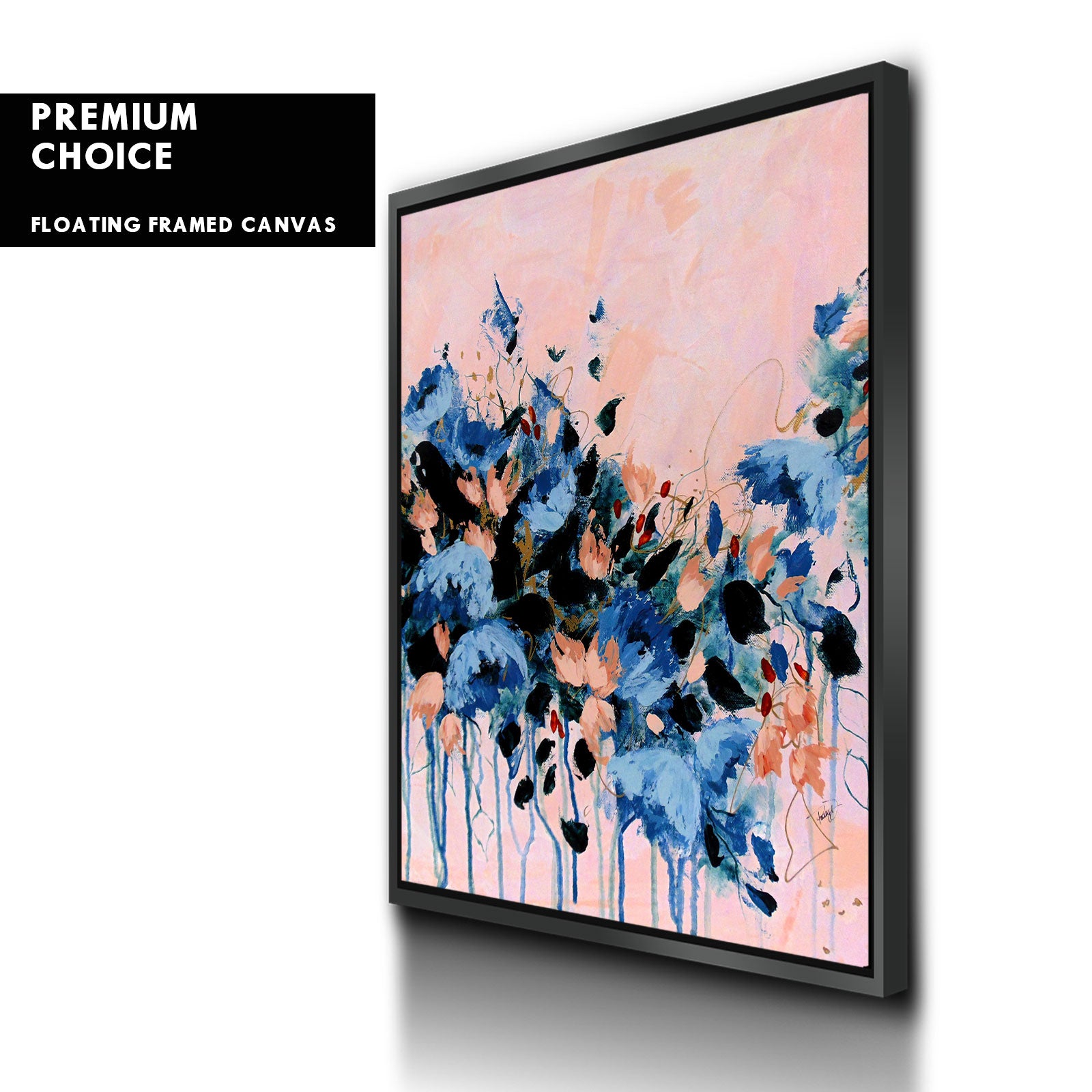 Our premium stretched canvas inserted perfectly in a Roma Moulding™ 100% real Pine Wood frame, with a professional matte black finish, and hanging hardware installed. Our Floater Frames are 5 times sanded & finished without toxins or chipping, for a museum quality framed artwork.