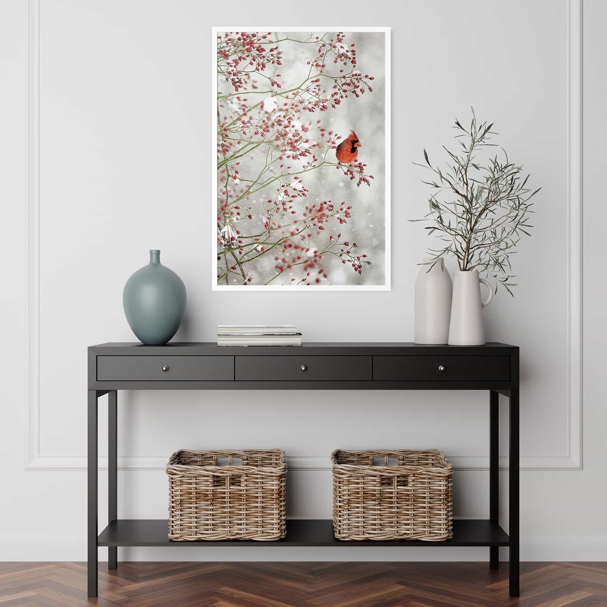 Red Cardinal in the Red Berries