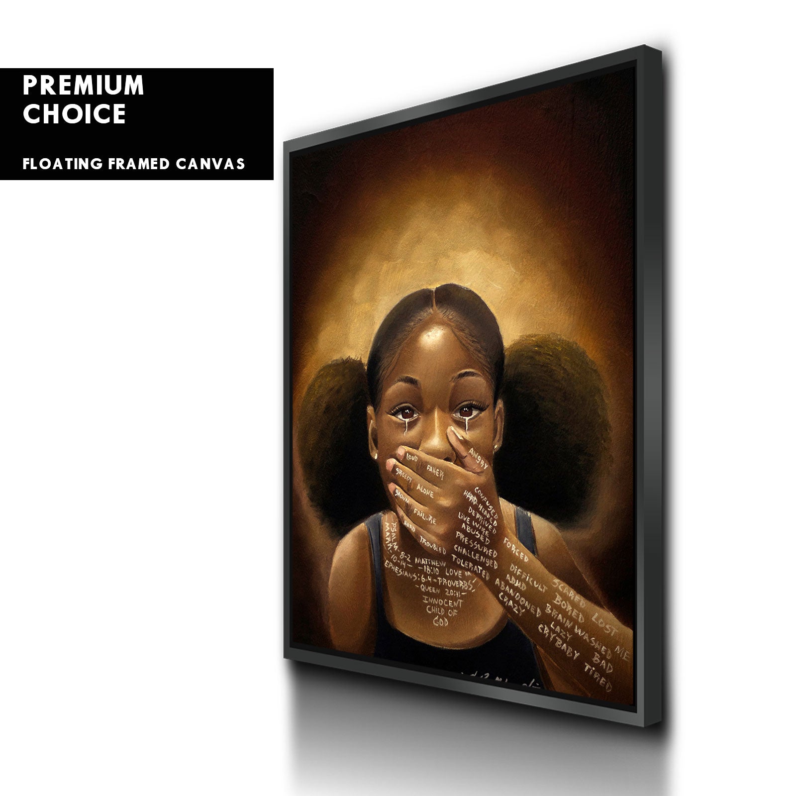 Our premium stretched canvas inserted perfectly in a Roma Moulding™ 100% real Pine Wood frame, with a professional matte black finish, and hanging hardware installed. Our Floater Frames are 5 times sanded & finished without toxins or chipping, for a museum quality framed artwork.