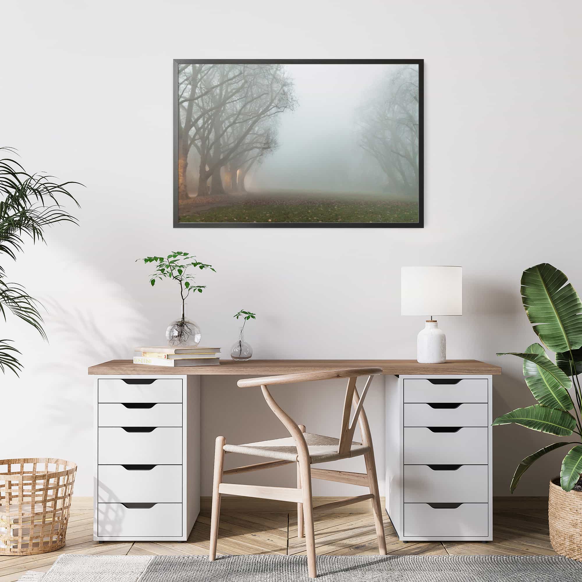 The highest quality Fine Art photo paper, in our 100% real wood frame with a professional matte black finish, and hanging hardware installed. Rubber bumpers also included to protect your wall, and make sure your framed print remains straight.