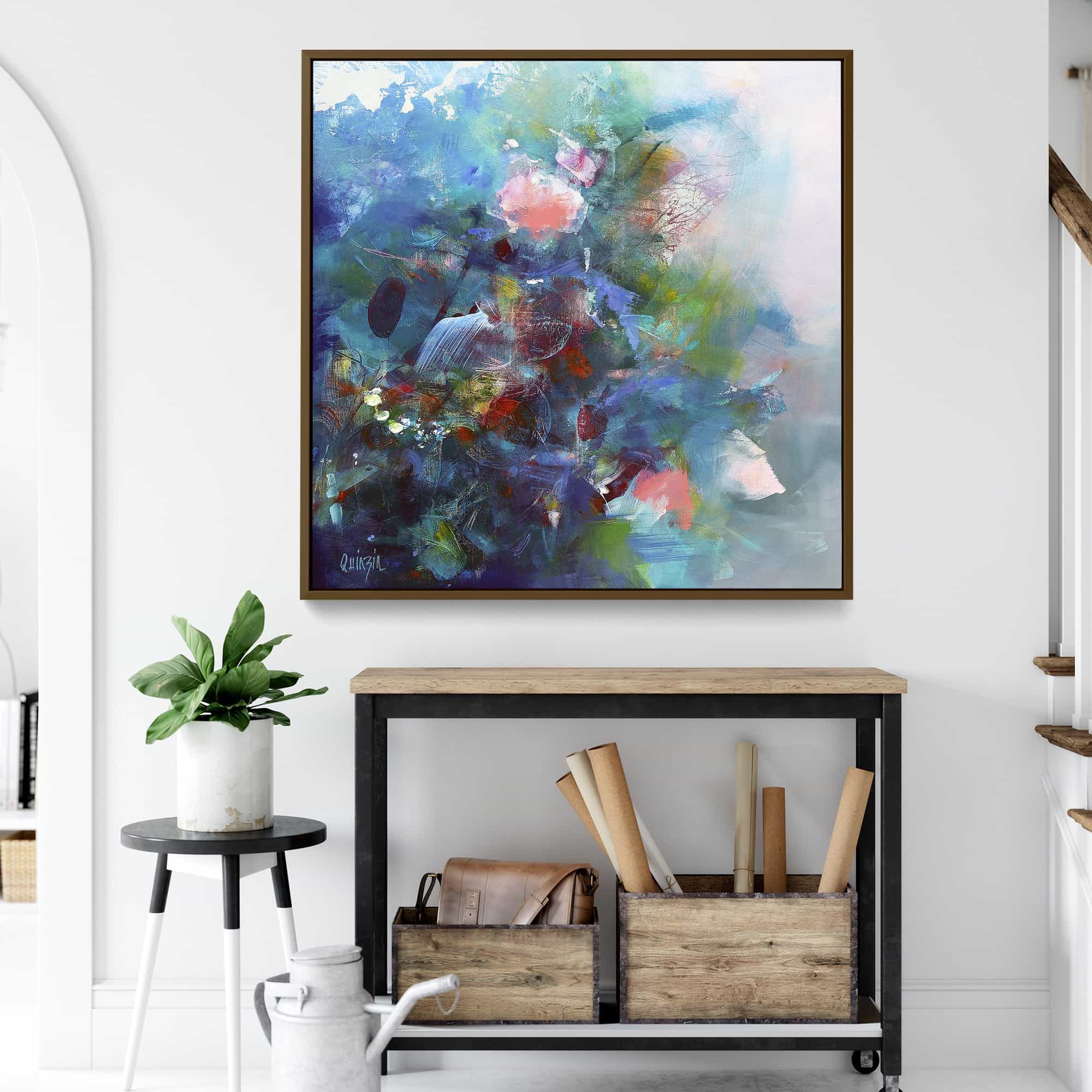 The artwork is beautiful. And beautifully framed. It’s the perfect size for over the fireplace and it really brightens the room. I’m very happy with it.