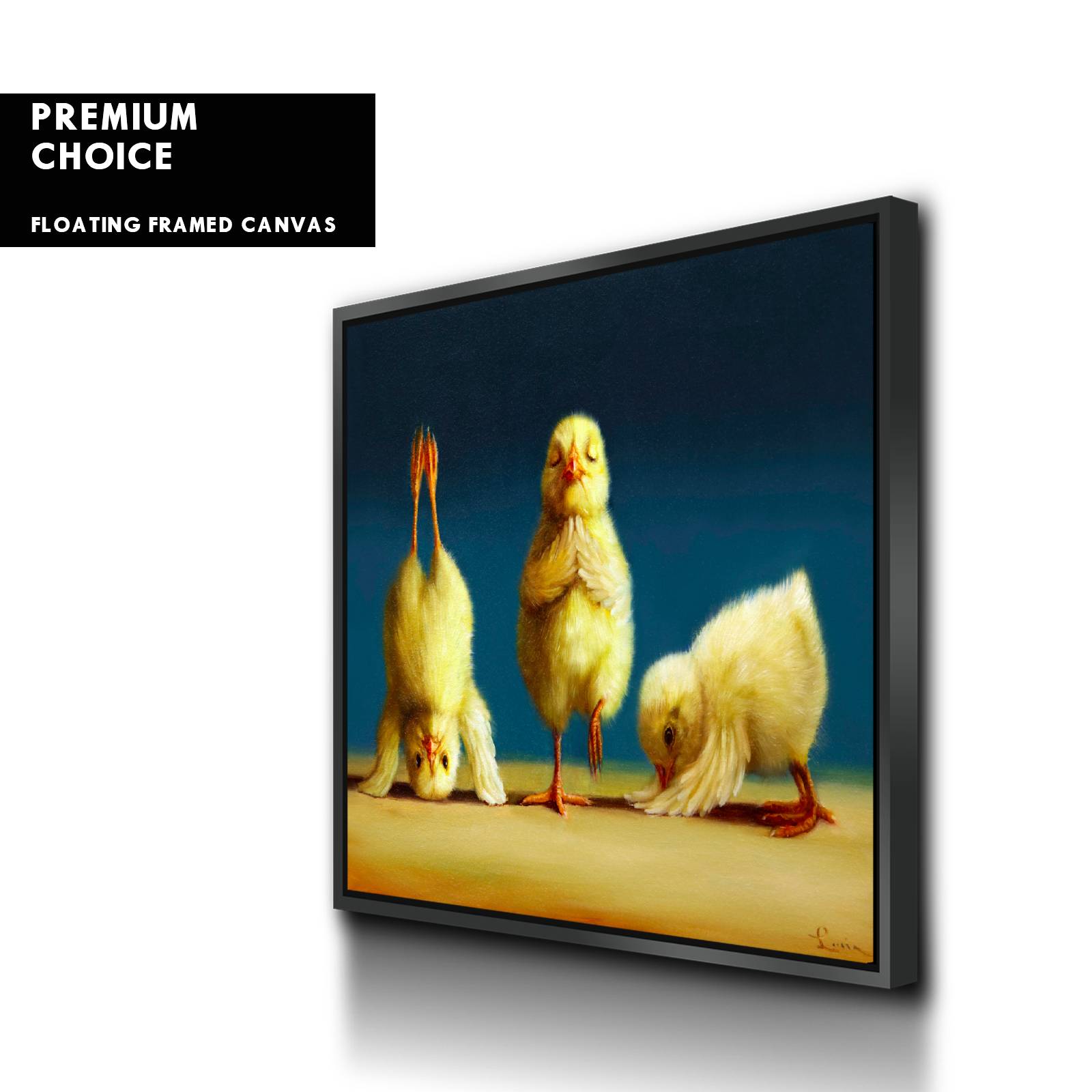 Our premium stretched canvas inserted perfectly in a Roma Moulding™ 100% real Pine Wood frame, with a professional matte black finish, and hanging hardware installed. Our Floater Frames are 5 times sanded & finished without toxins or chipping, for a museum quality framed artwork.