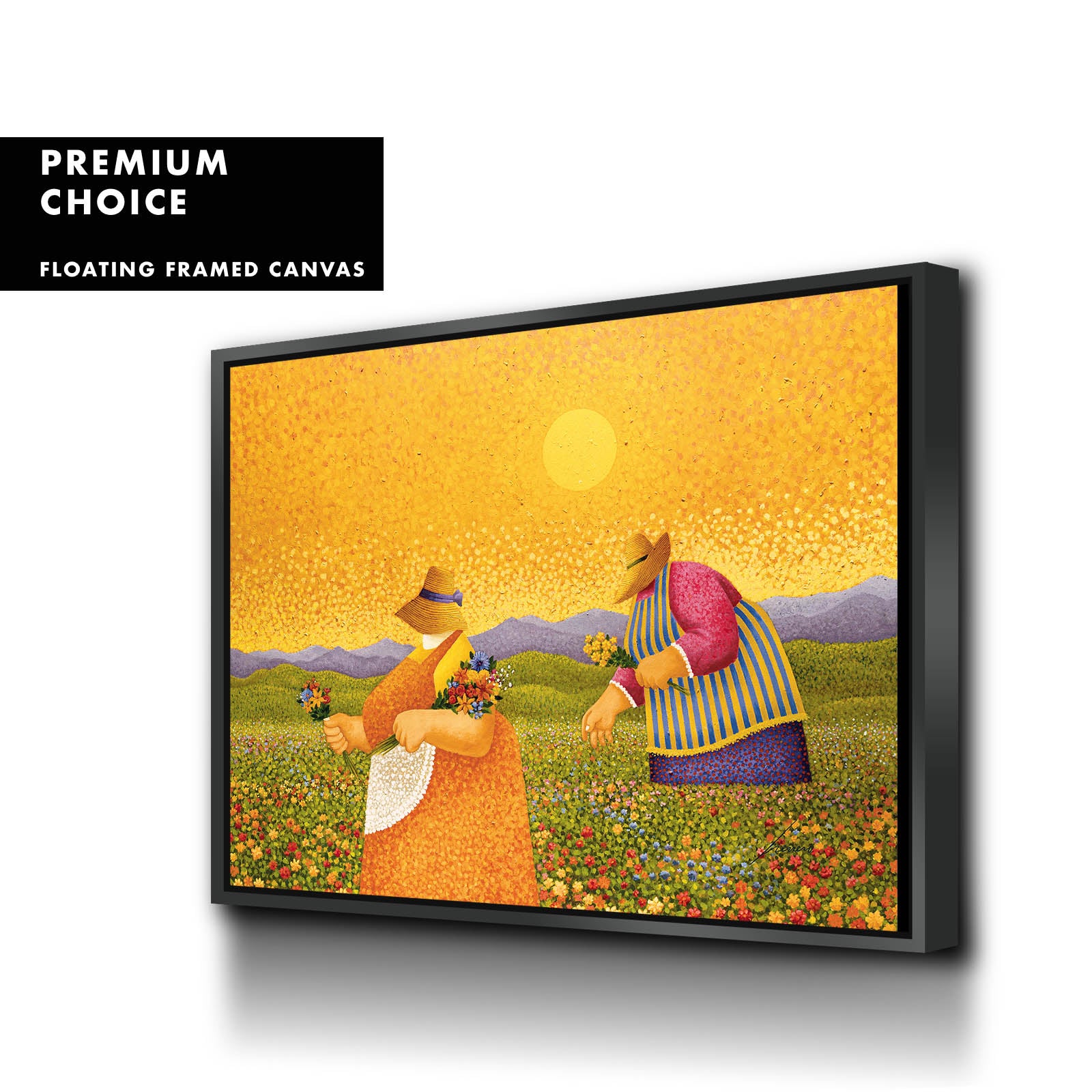 Our premium stretched canvas inserted perfectly in a Roma Moulding™ 100% real Pine Wood frame, with a professional matte black finish, and hanging hardware installed. Our Floater Frames are 5 times sanded & finished without toxins or chipping, for a museum quality framed artwork.