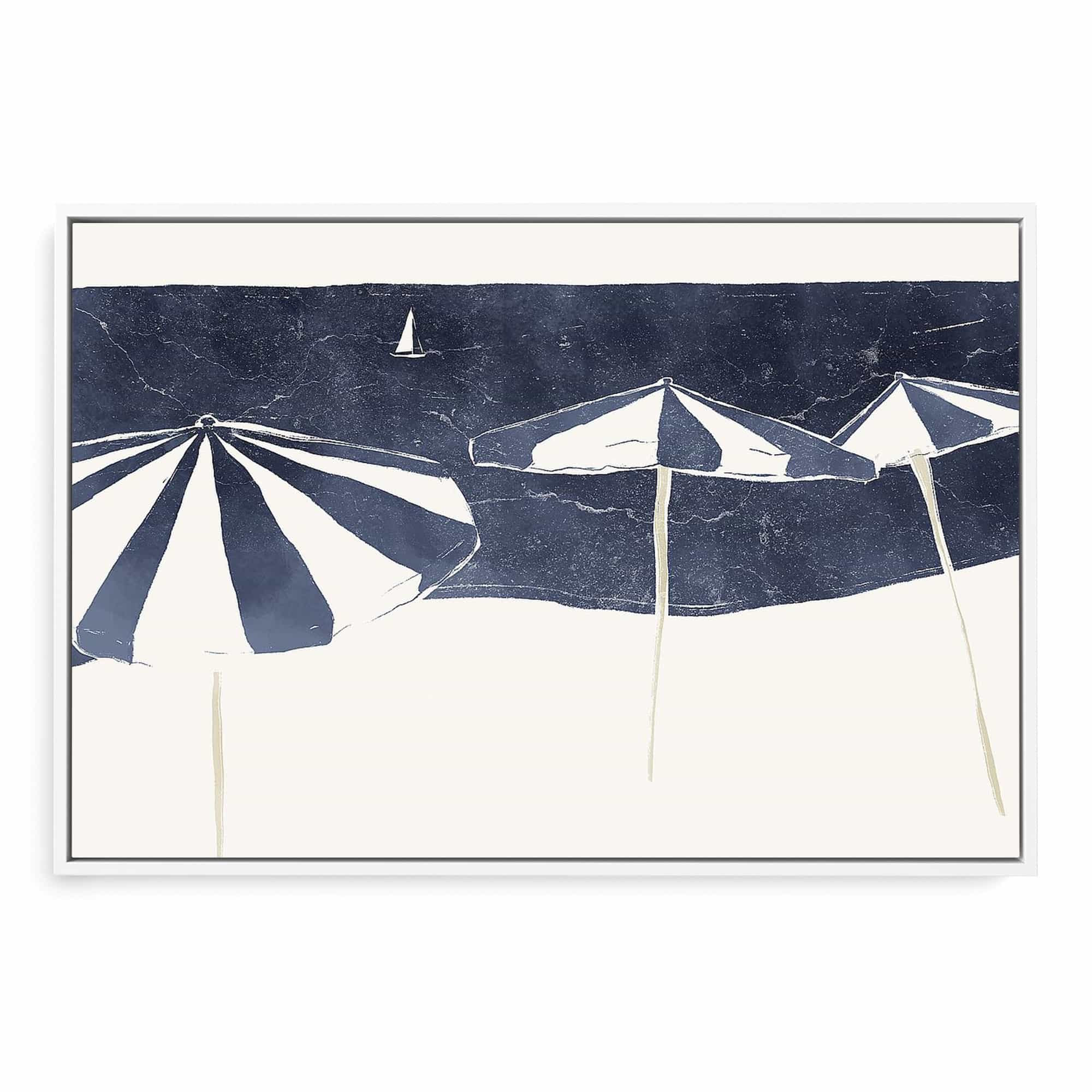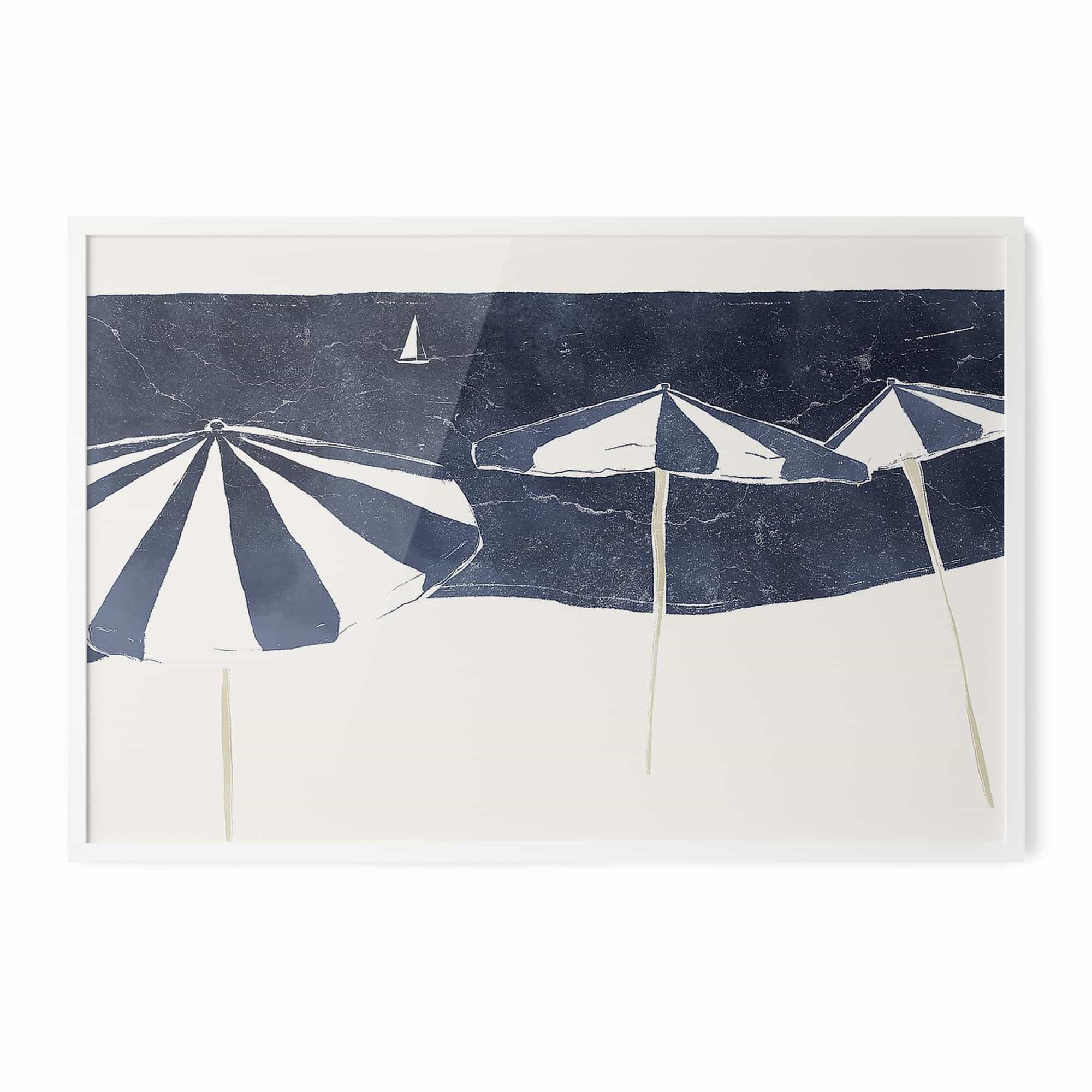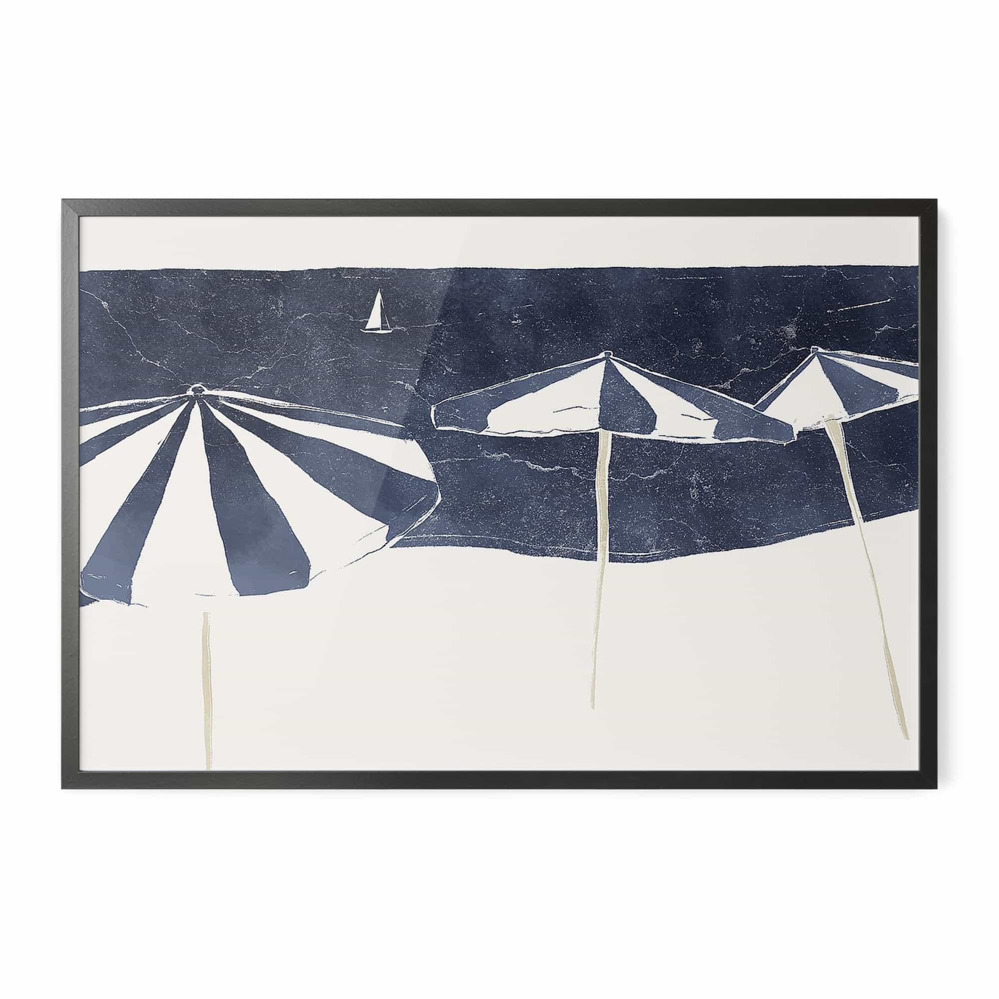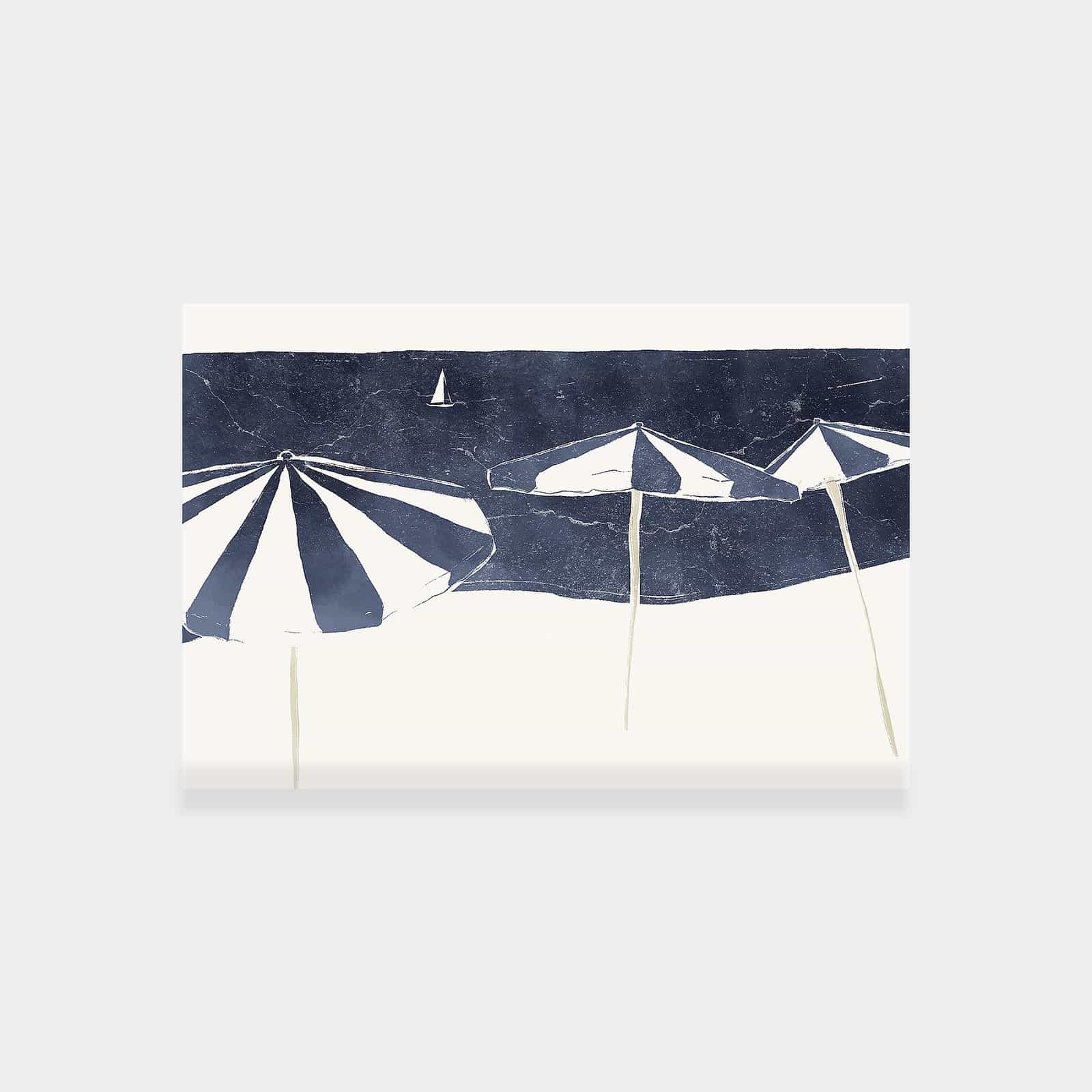 Blue Umbrellas and Sailboat