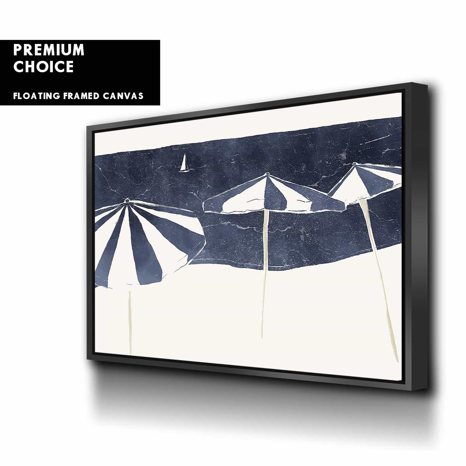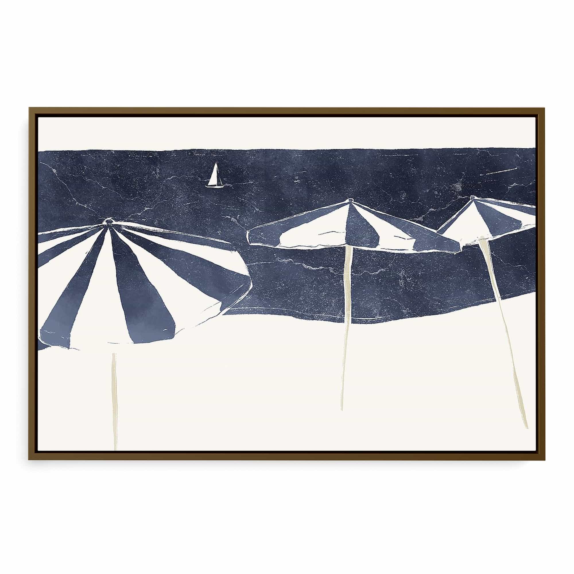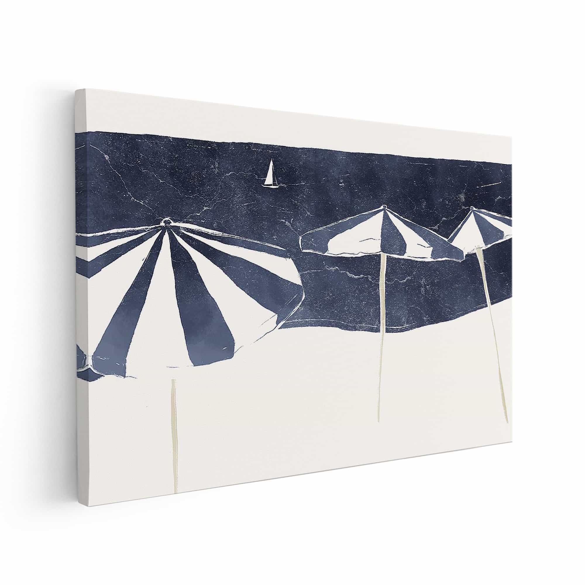 Blue Umbrellas and Sailboat