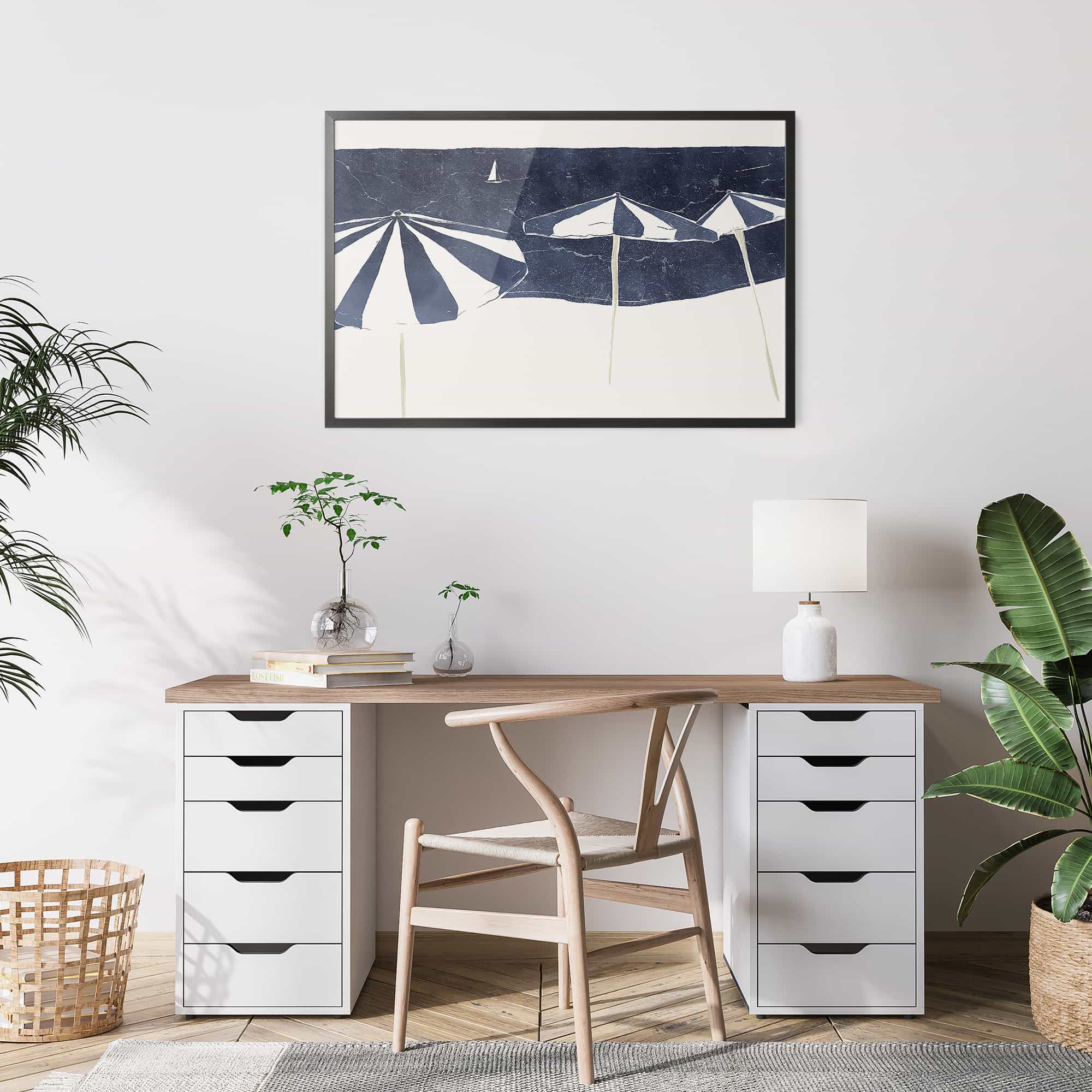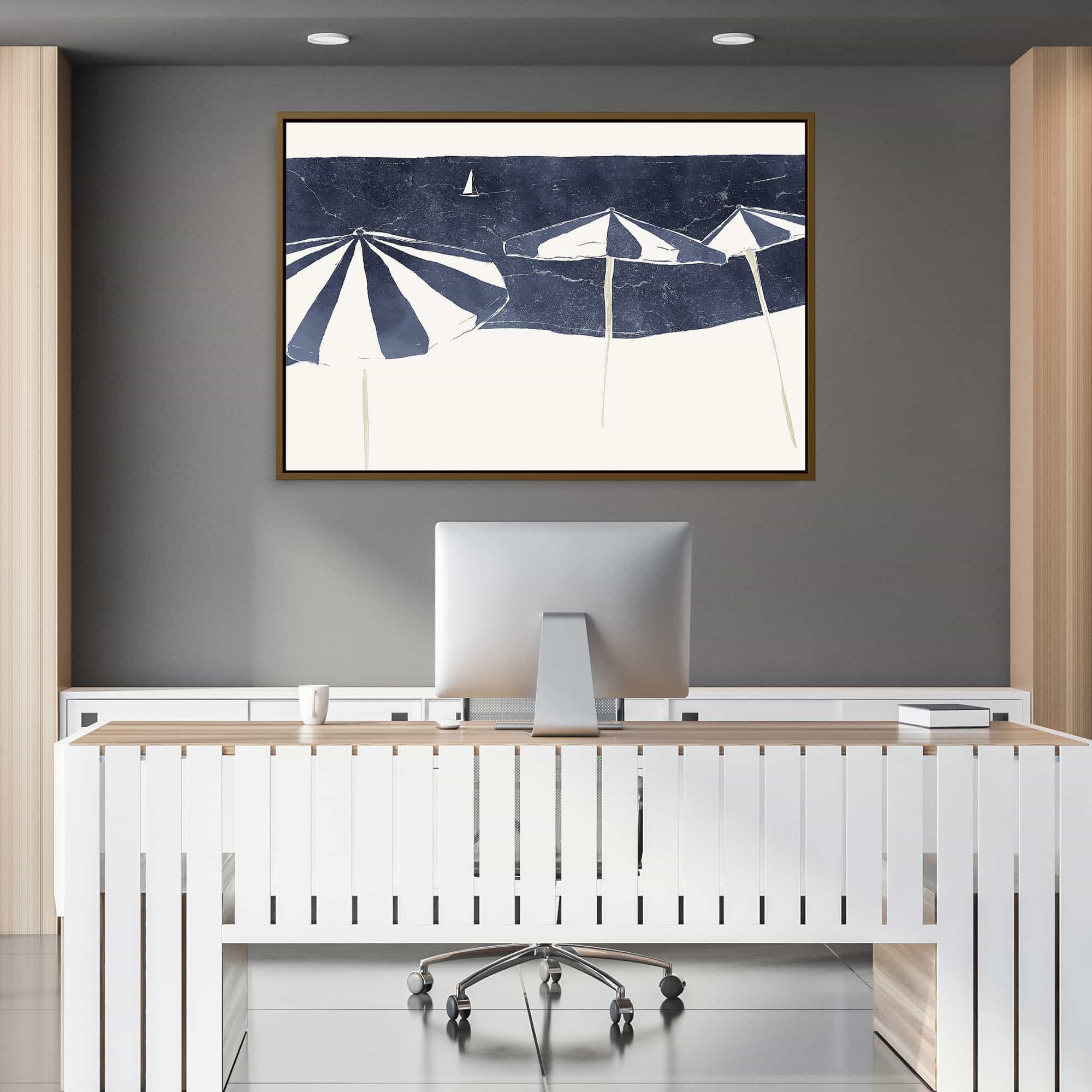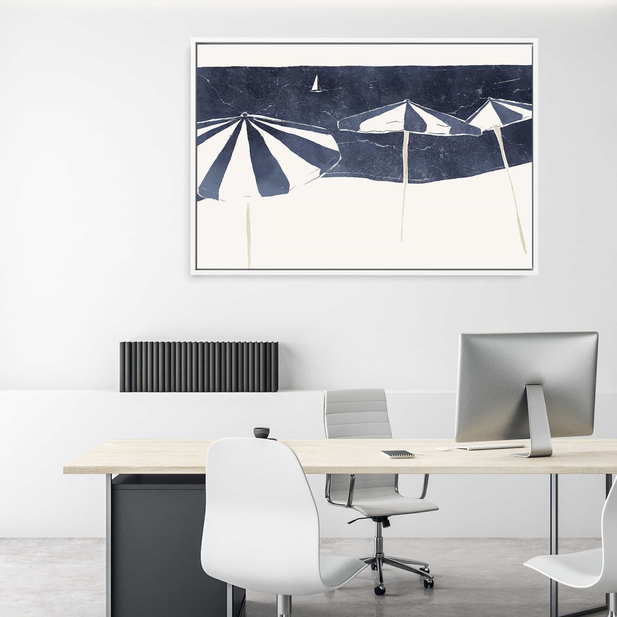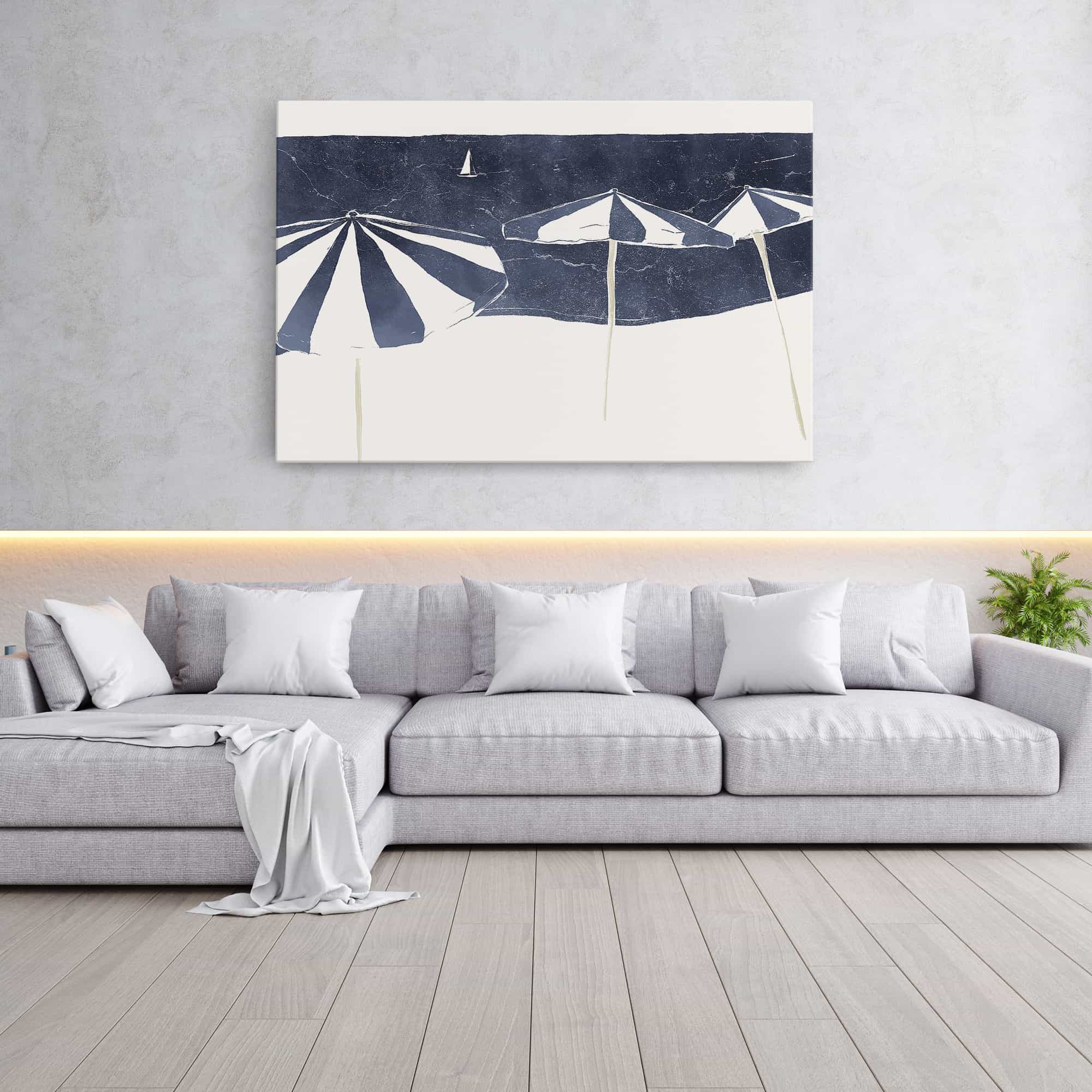 Blue Umbrellas and Sailboat