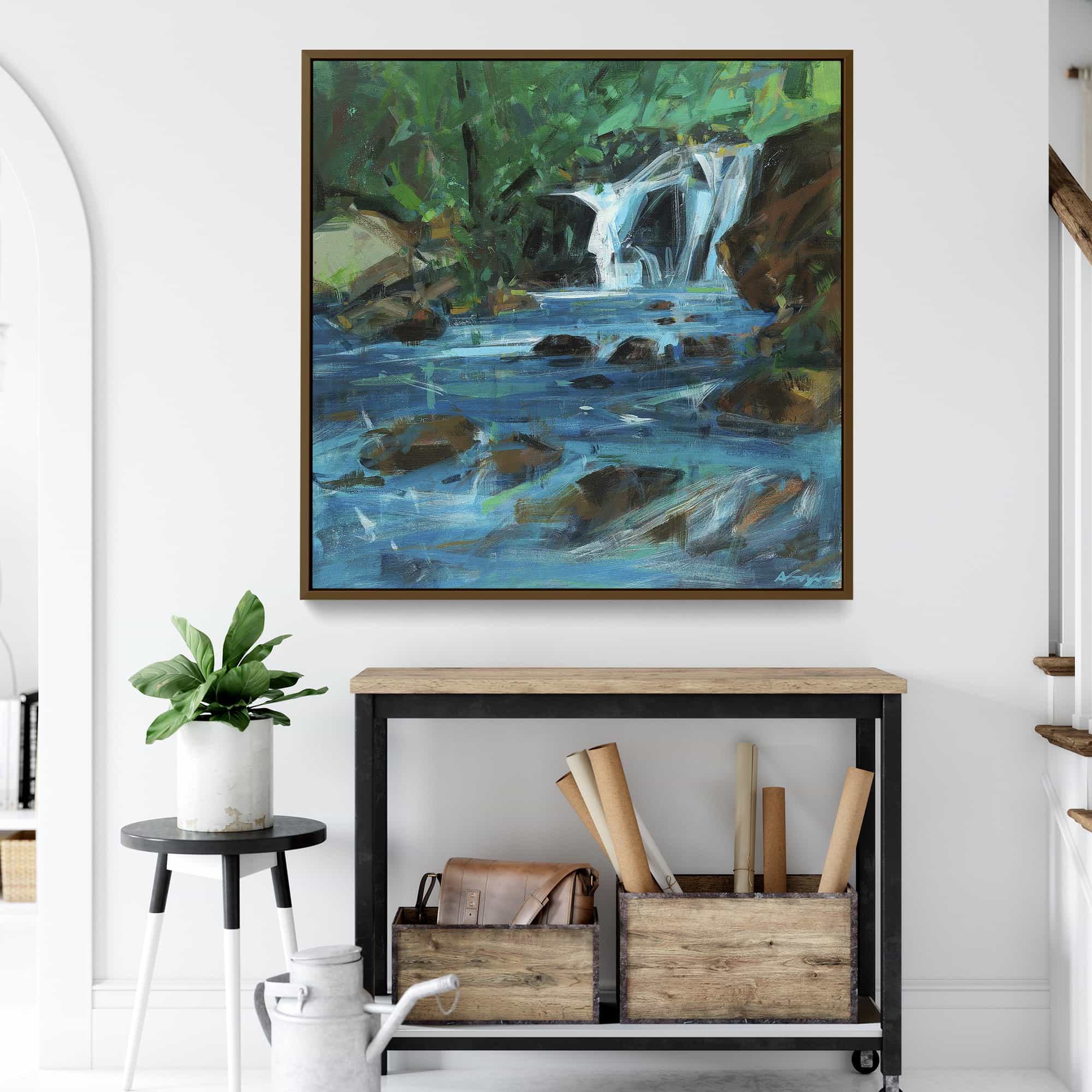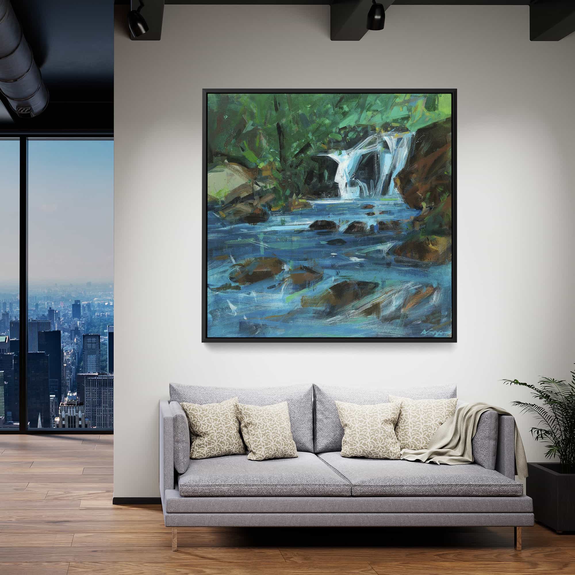 The artwork is beautiful. And beautifully framed. It’s the perfect size for over the fireplace and it really brightens the room. I’m very happy with it.
