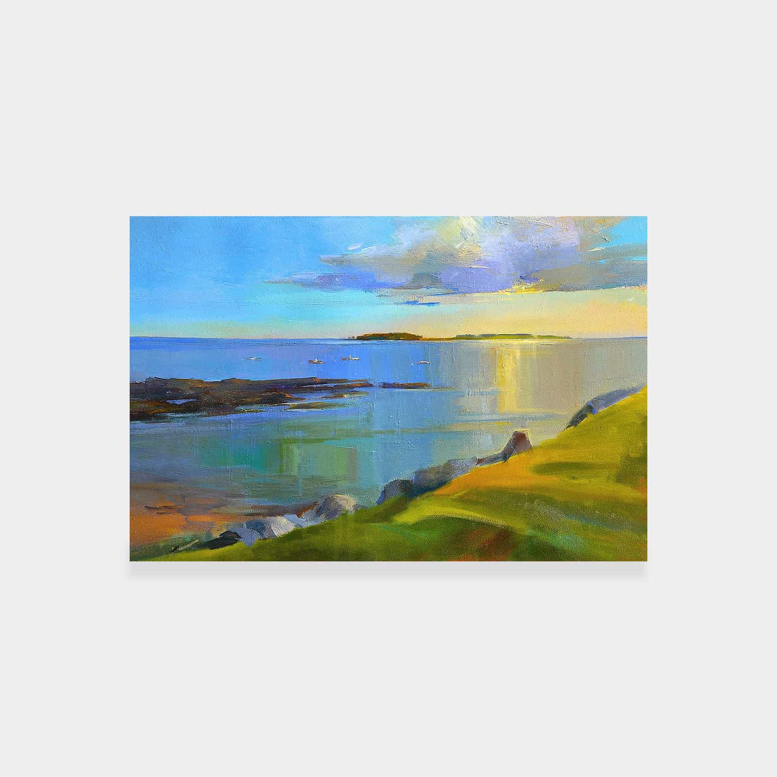 The artwork is beautiful. And beautifully framed. It’s the perfect size for over the fireplace and it really brightens the room. I’m very happy with it.