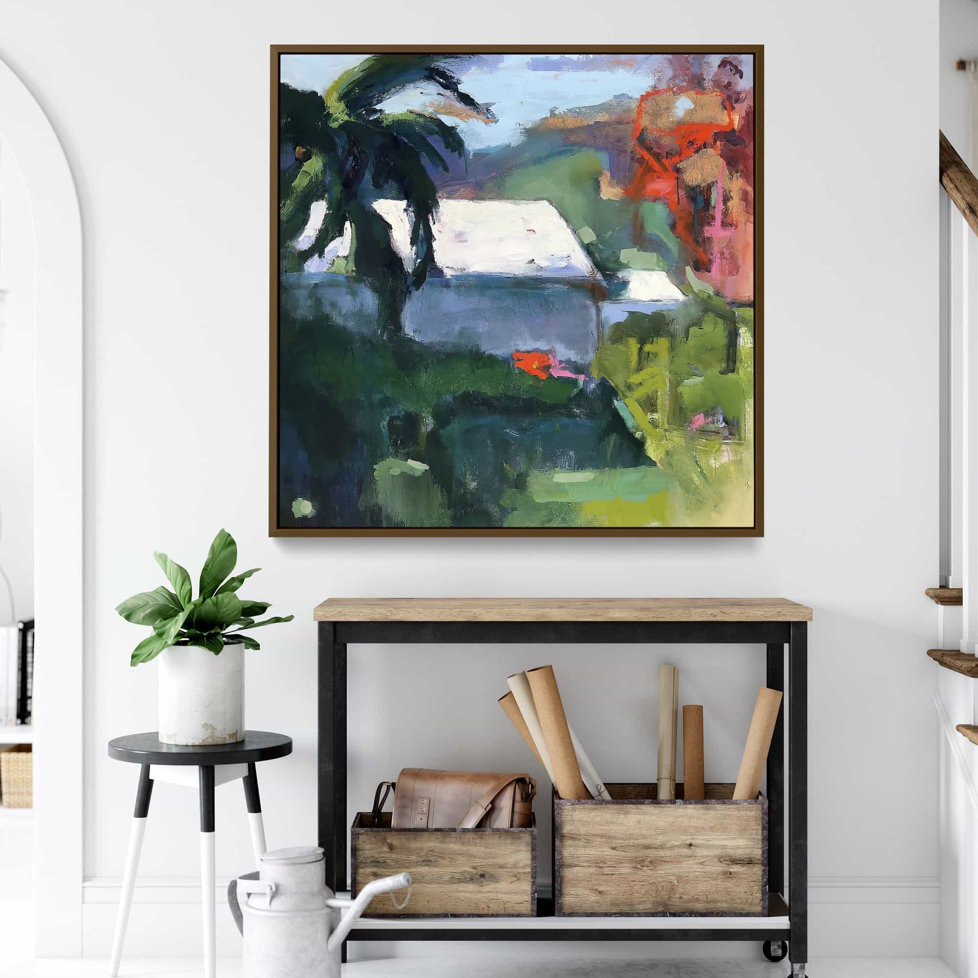 The artwork is beautiful. And beautifully framed. It’s the perfect size for over the fireplace and it really brightens the room. I’m very happy with it.