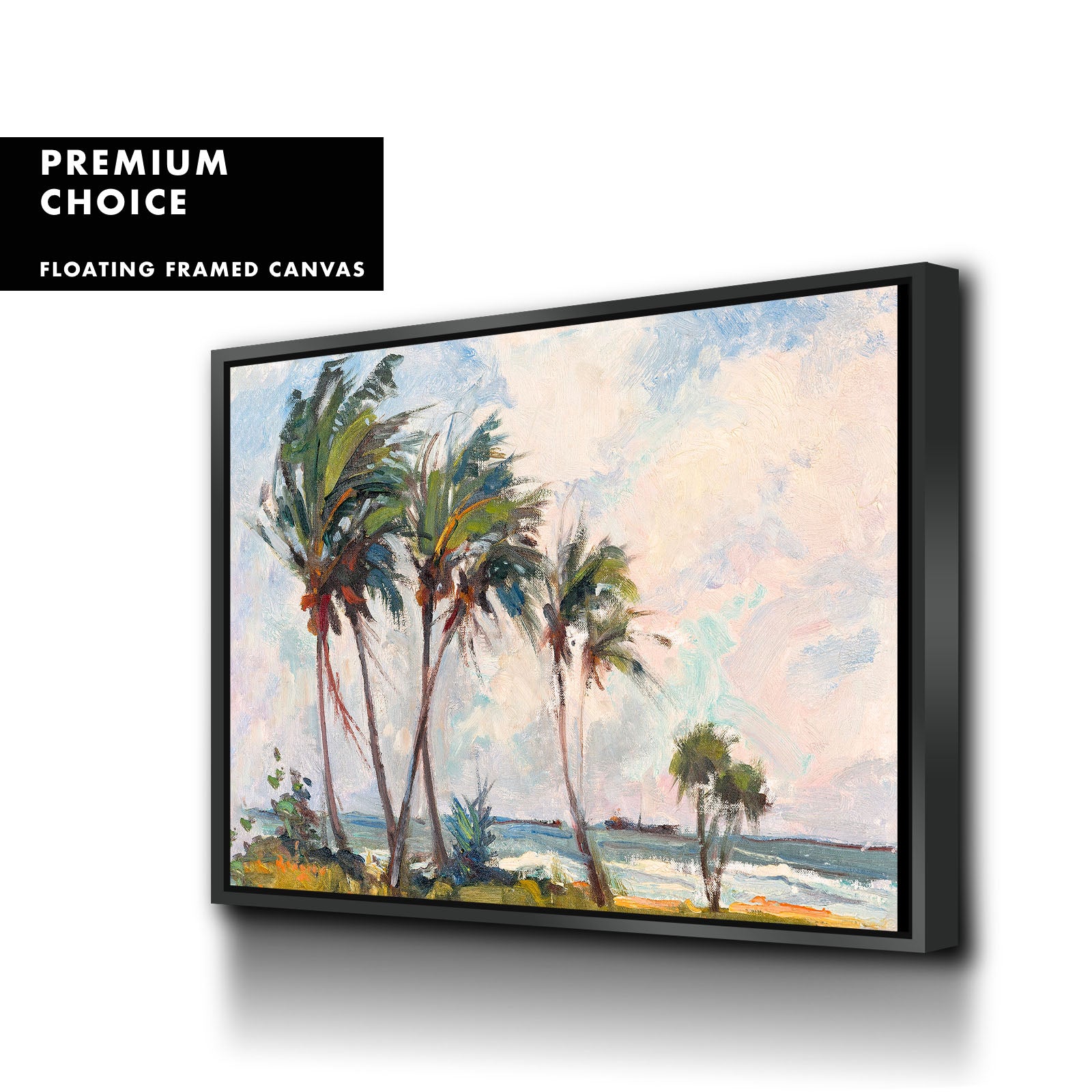 Our premium stretched canvas inserted perfectly in a Roma Moulding™ 100% real Pine Wood frame, with a professional matte black finish, and hanging hardware installed. Our Floater Frames are 5 times sanded & finished without toxins or chipping, for a museum quality framed artwork.