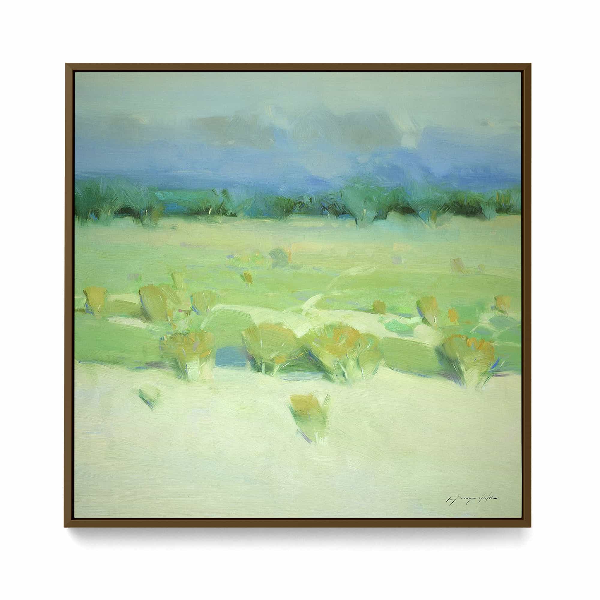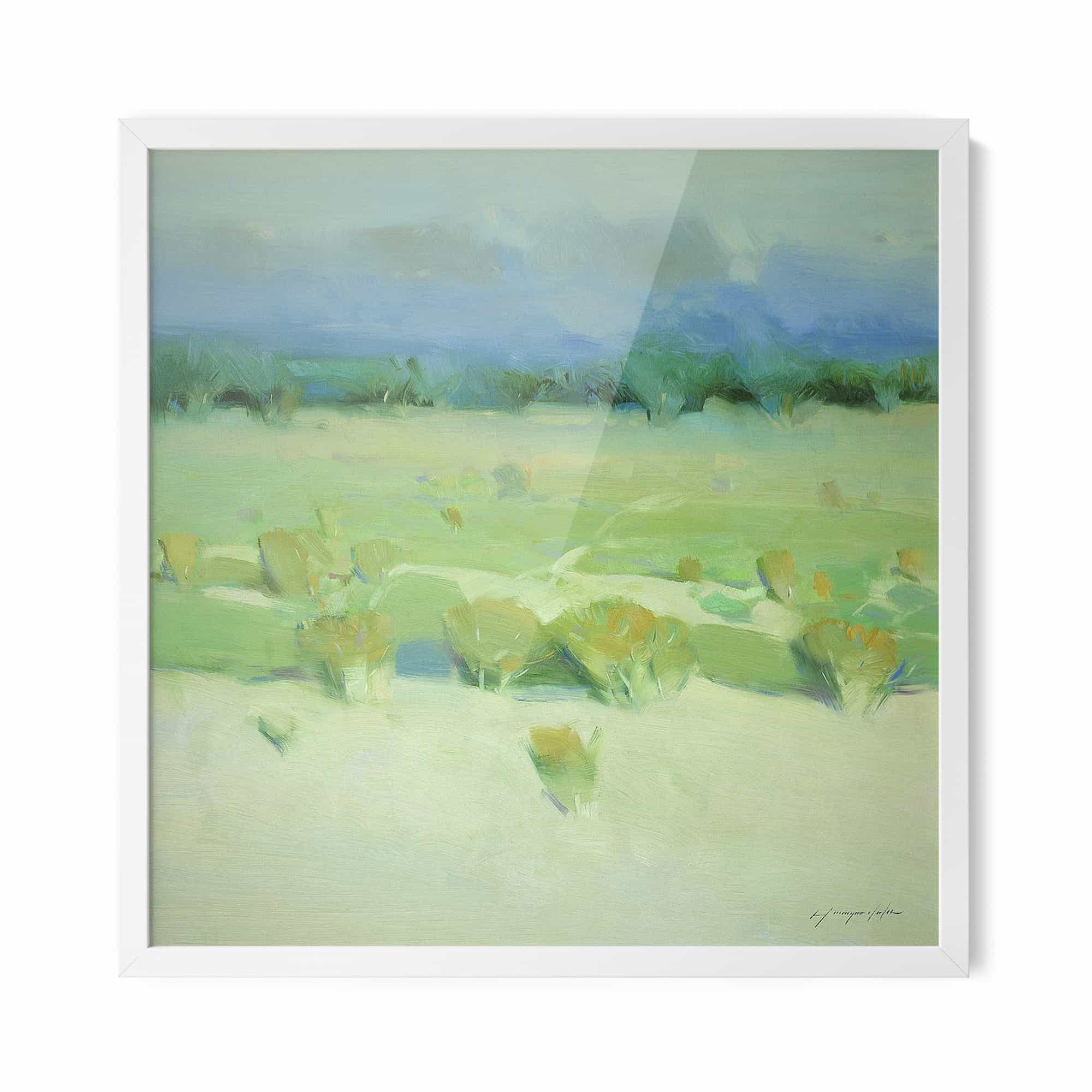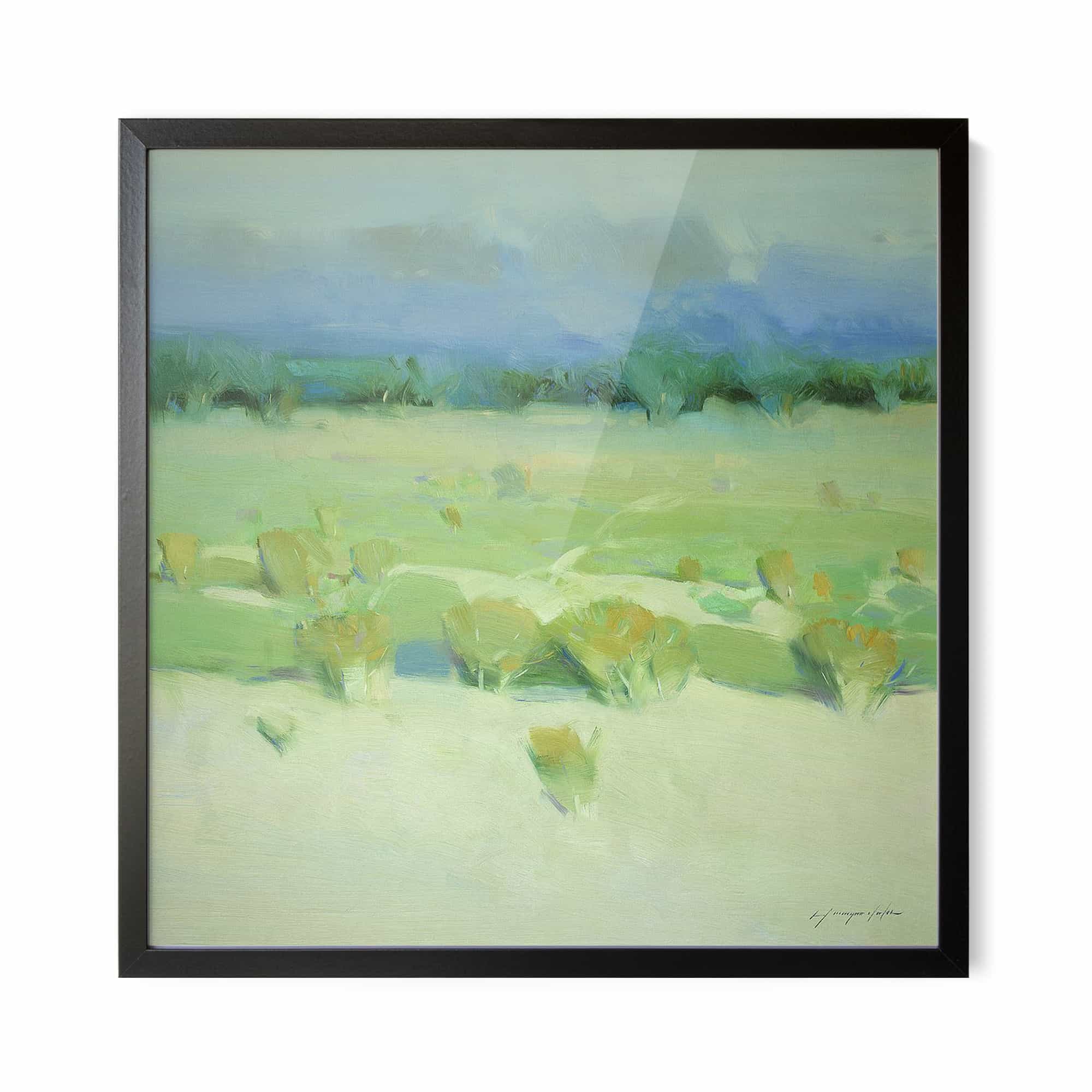 The artwork is beautiful. And beautifully framed. It’s the perfect size for over the fireplace and it really brightens the room. I’m very happy with it.