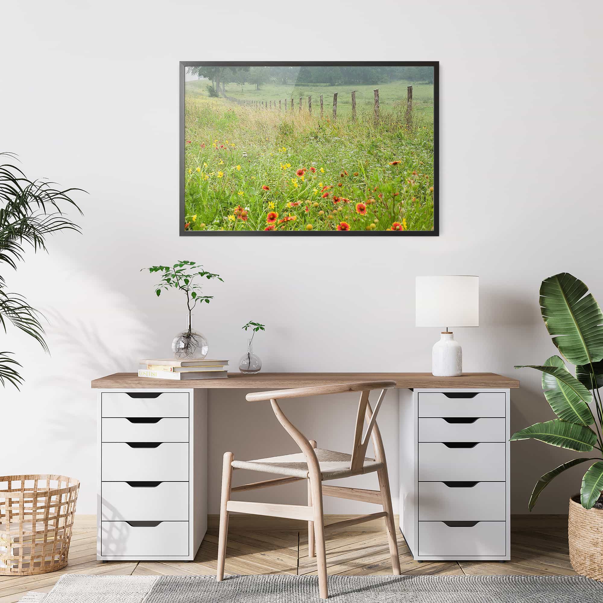 The highest quality Fine Art photo paper, in our 100% real wood frame with a professional matte black finish, and hanging hardware installed. Rubber bumpers also included to protect your wall, and make sure your framed print remains straight.