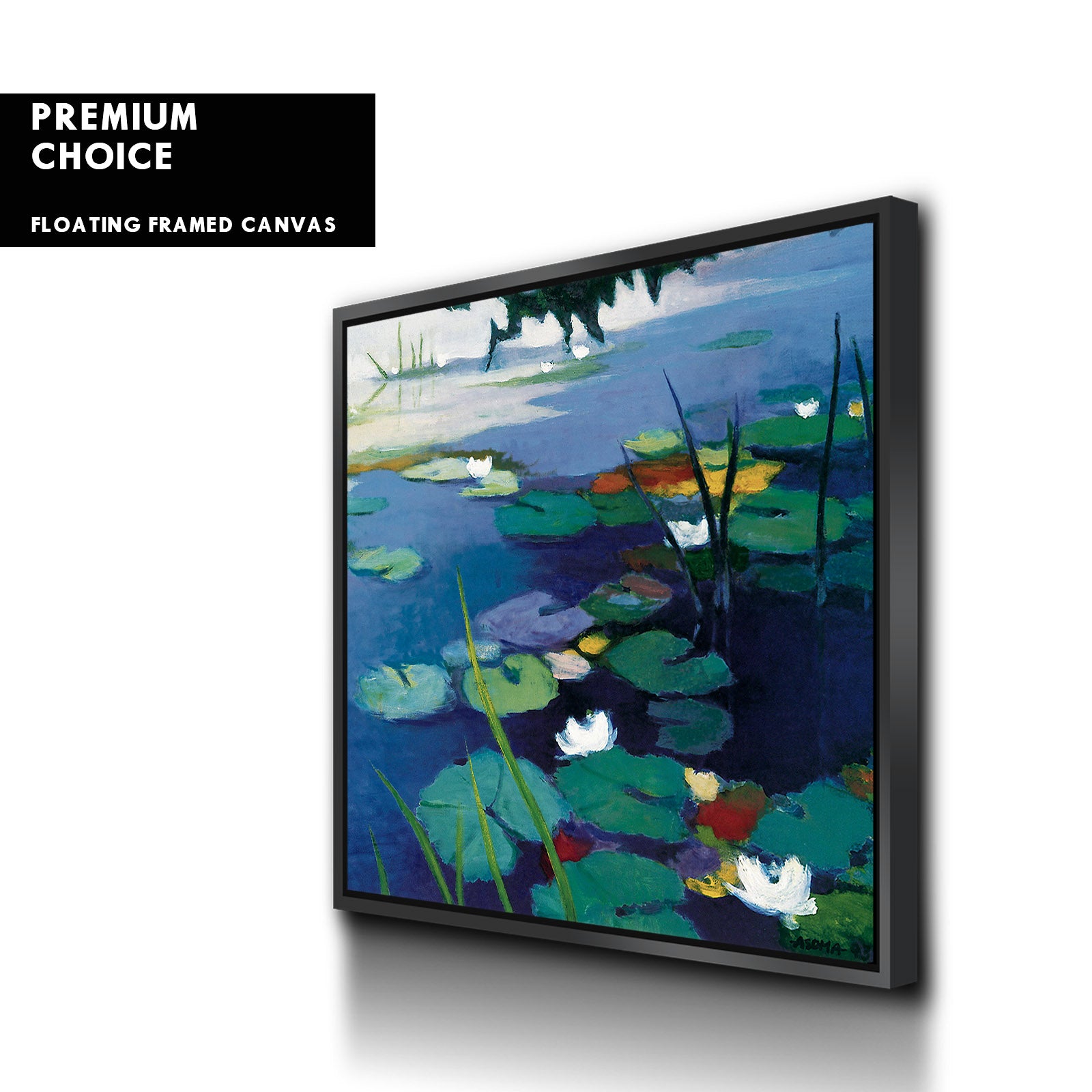 Our premium stretched canvas inserted perfectly in a Roma Moulding™ 100% real Pine Wood frame, with a professional matte black finish, and hanging hardware installed. Our Floater Frames are 5 times sanded & finished without toxins or chipping, for a museum quality framed artwork.