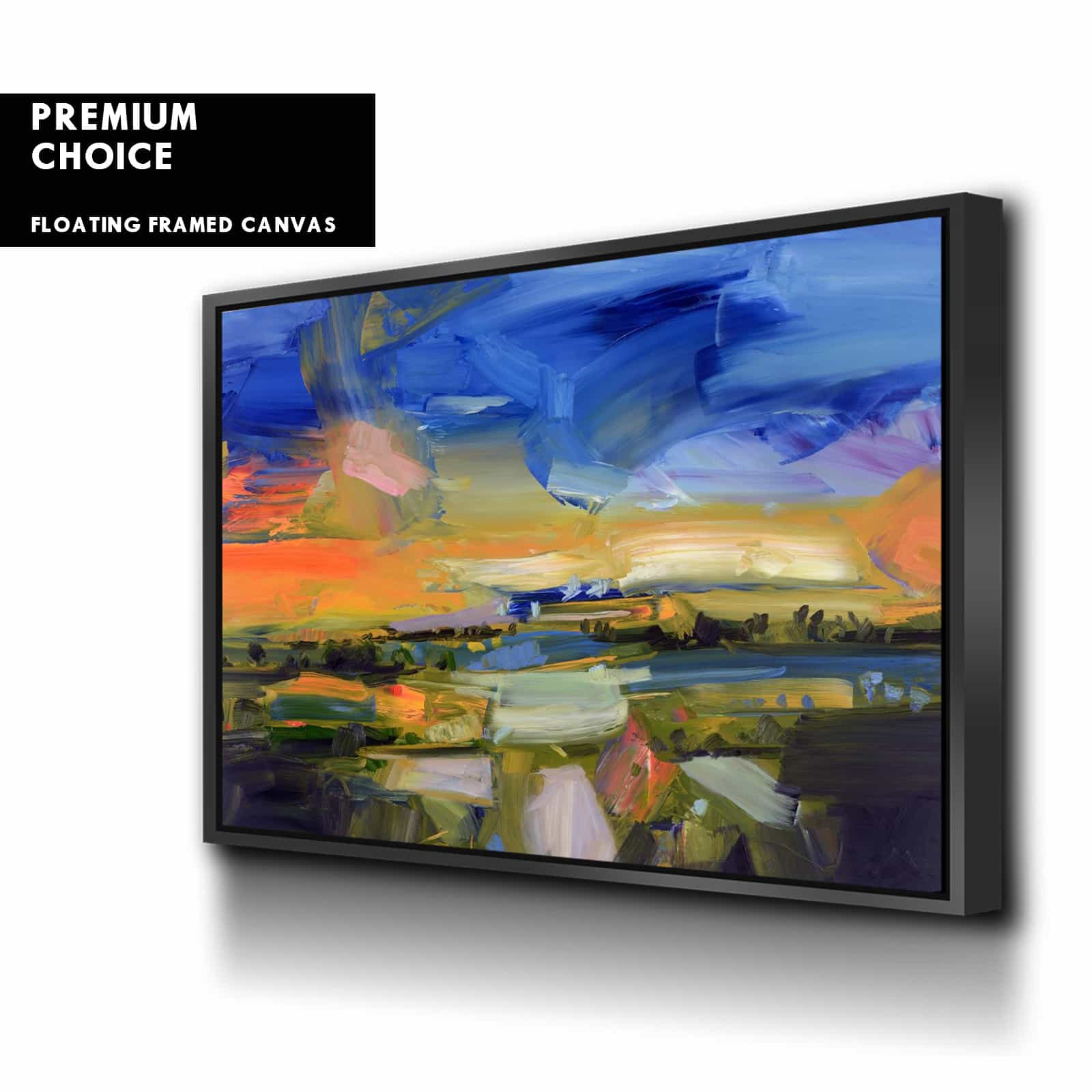 Our premium stretched canvas inserted perfectly in a Roma Moulding™ 100% real Pine Wood frame, with a professional matte black finish, and hanging hardware installed. Our Floater Frames are 5 times sanded & finished without toxins or chipping, for a museum quality framed artwork.