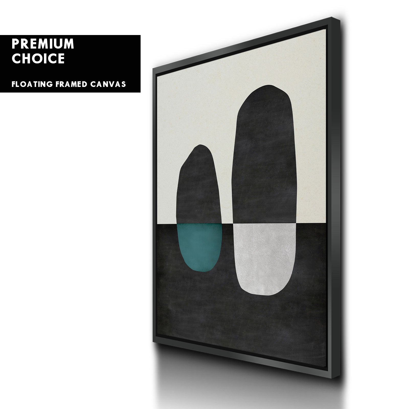Our premium stretched canvas inserted perfectly in a Roma Moulding™ 100% real Pine Wood frame, with a professional matte black finish, and hanging hardware installed. Our Floater Frames are 5 times sanded & finished without toxins or chipping, for a museum quality framed artwork.