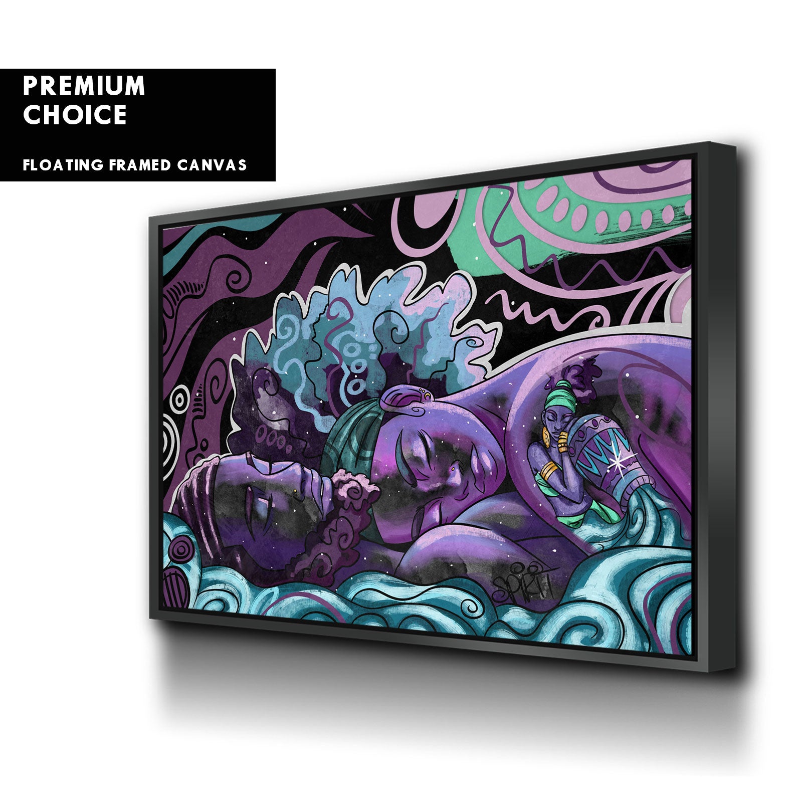 Our premium stretched canvas inserted perfectly in a Roma Moulding™ 100% real Pine Wood frame, with a professional matte black finish, and hanging hardware installed. Our Floater Frames are 5 times sanded & finished without toxins or chipping, for a museum quality framed artwork.