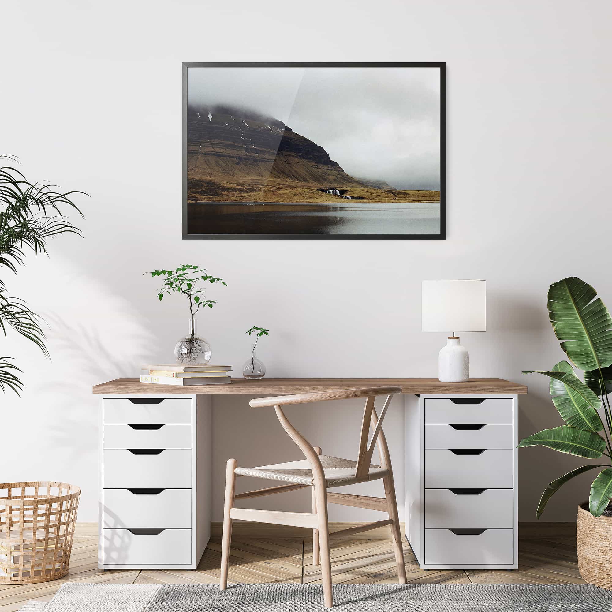 The highest quality Fine Art photo paper, in our 100% real wood frame with a professional matte black finish, and hanging hardware installed. Rubber bumpers also included to protect your wall, and make sure your framed print remains straight.
