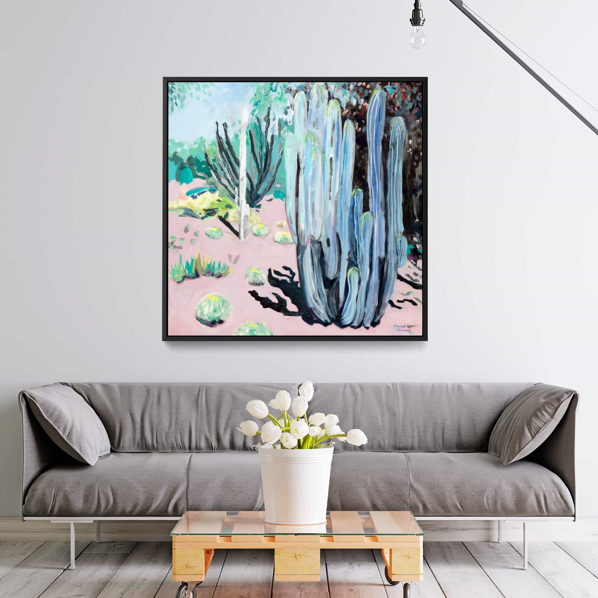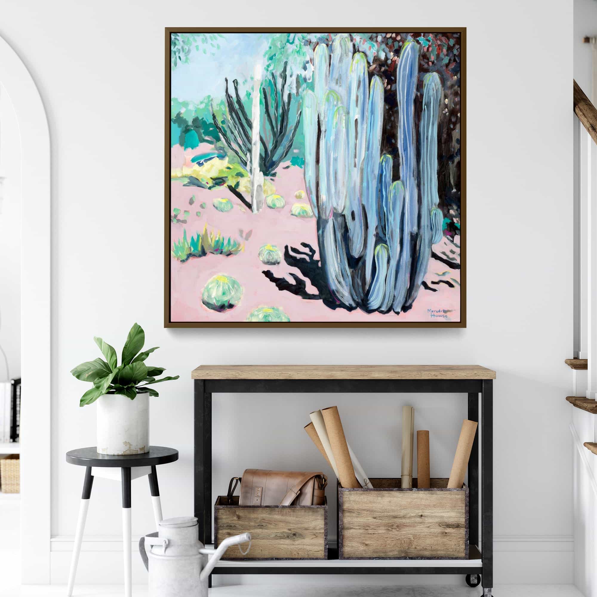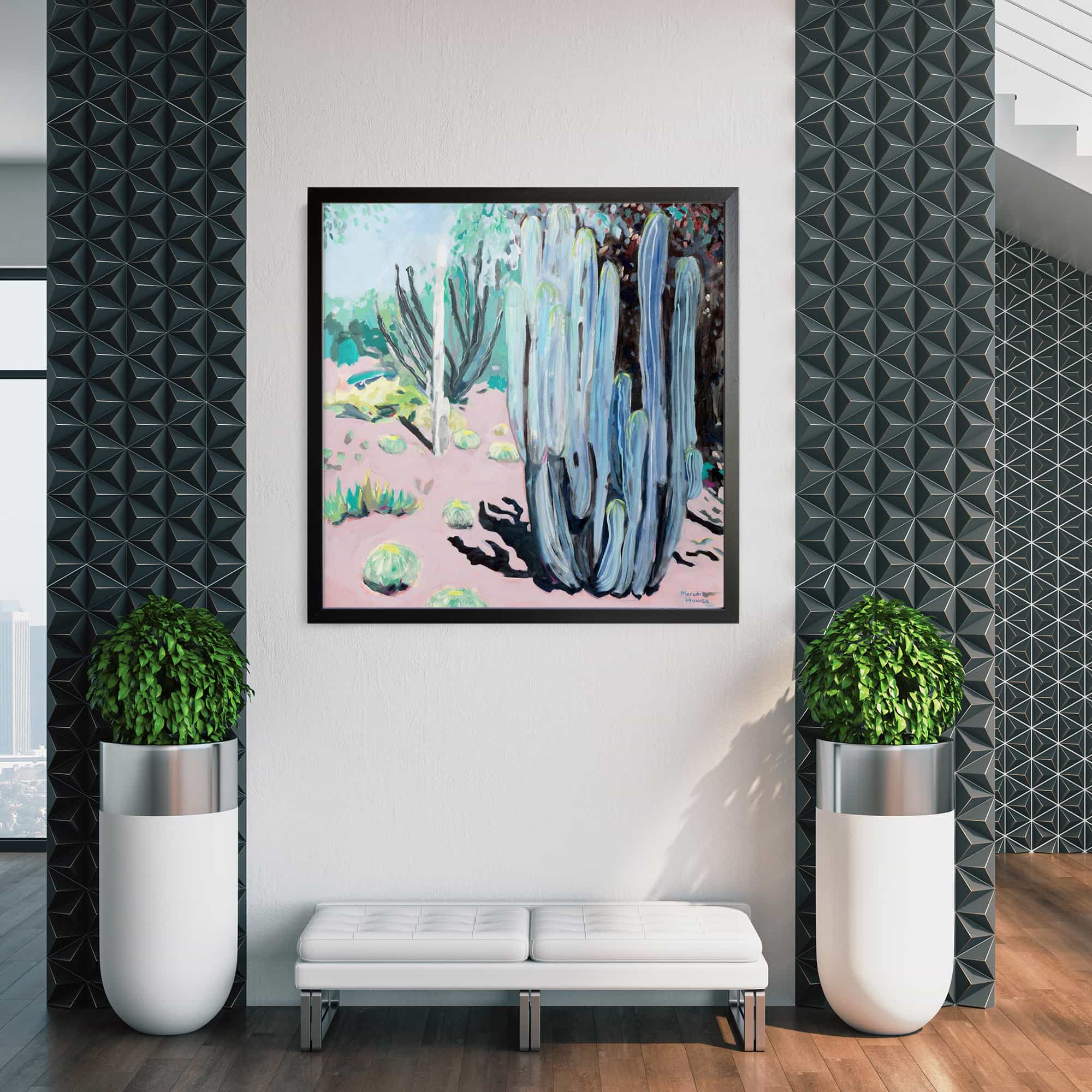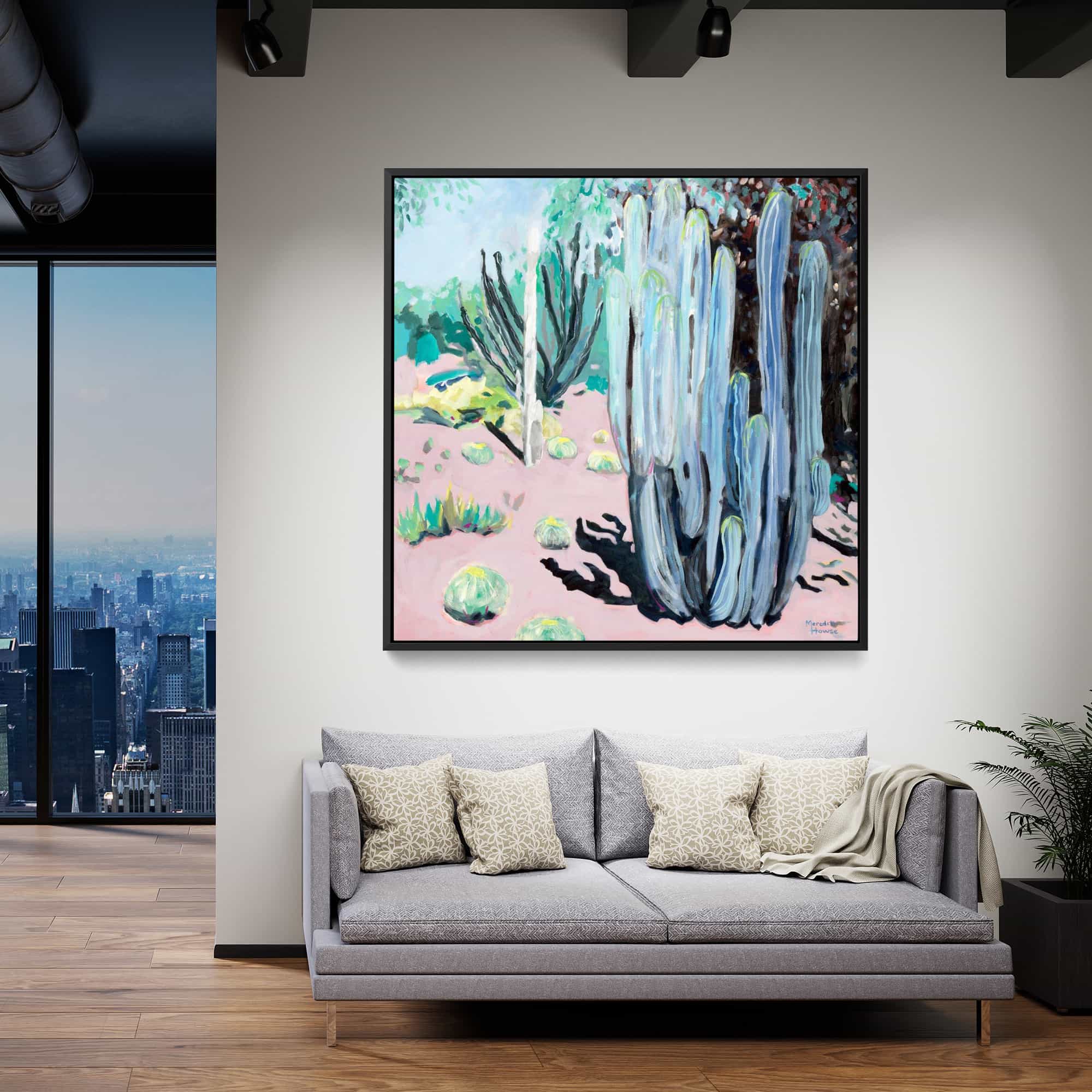 The artwork is beautiful. And beautifully framed. It’s the perfect size for over the fireplace and it really brightens the room. I’m very happy with it.