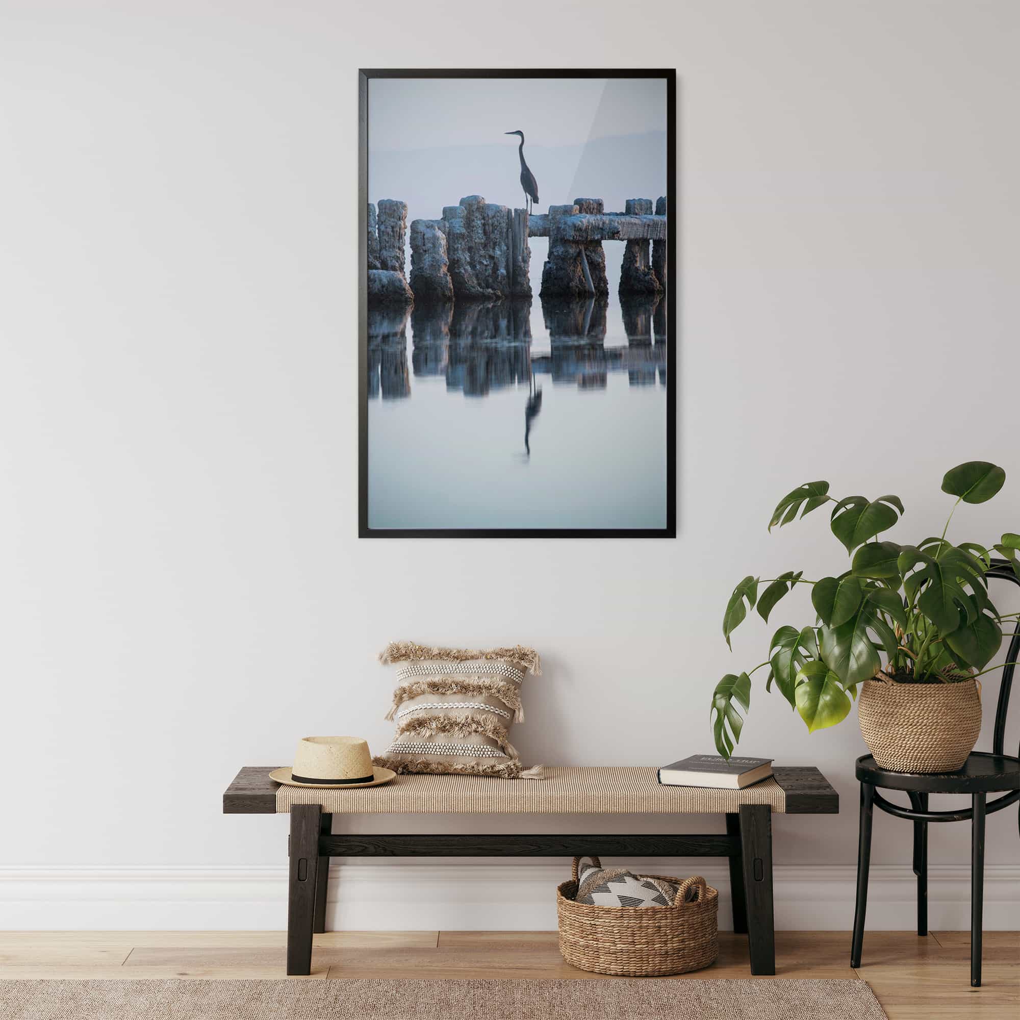 The highest quality Fine Art photo paper, in our 100% real wood frame with a professional matte black finish, and hanging hardware installed. Rubber bumpers also included to protect your wall, and make sure your framed print remains straight.