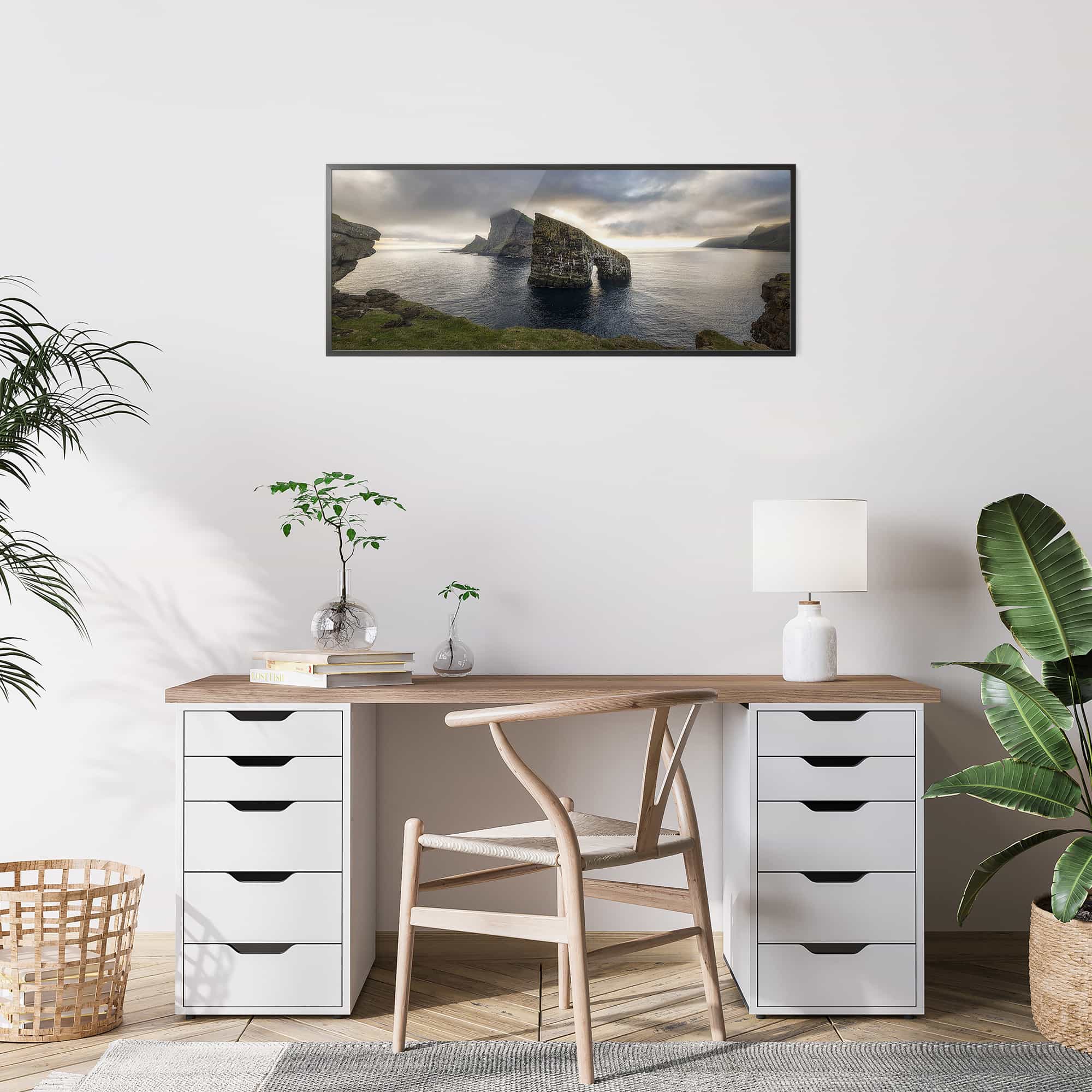 The highest quality Fine Art photo paper, in our 100% real wood frame with a professional matte black finish, and hanging hardware installed. Rubber bumpers also included to protect your wall, and make sure your framed print remains straight.