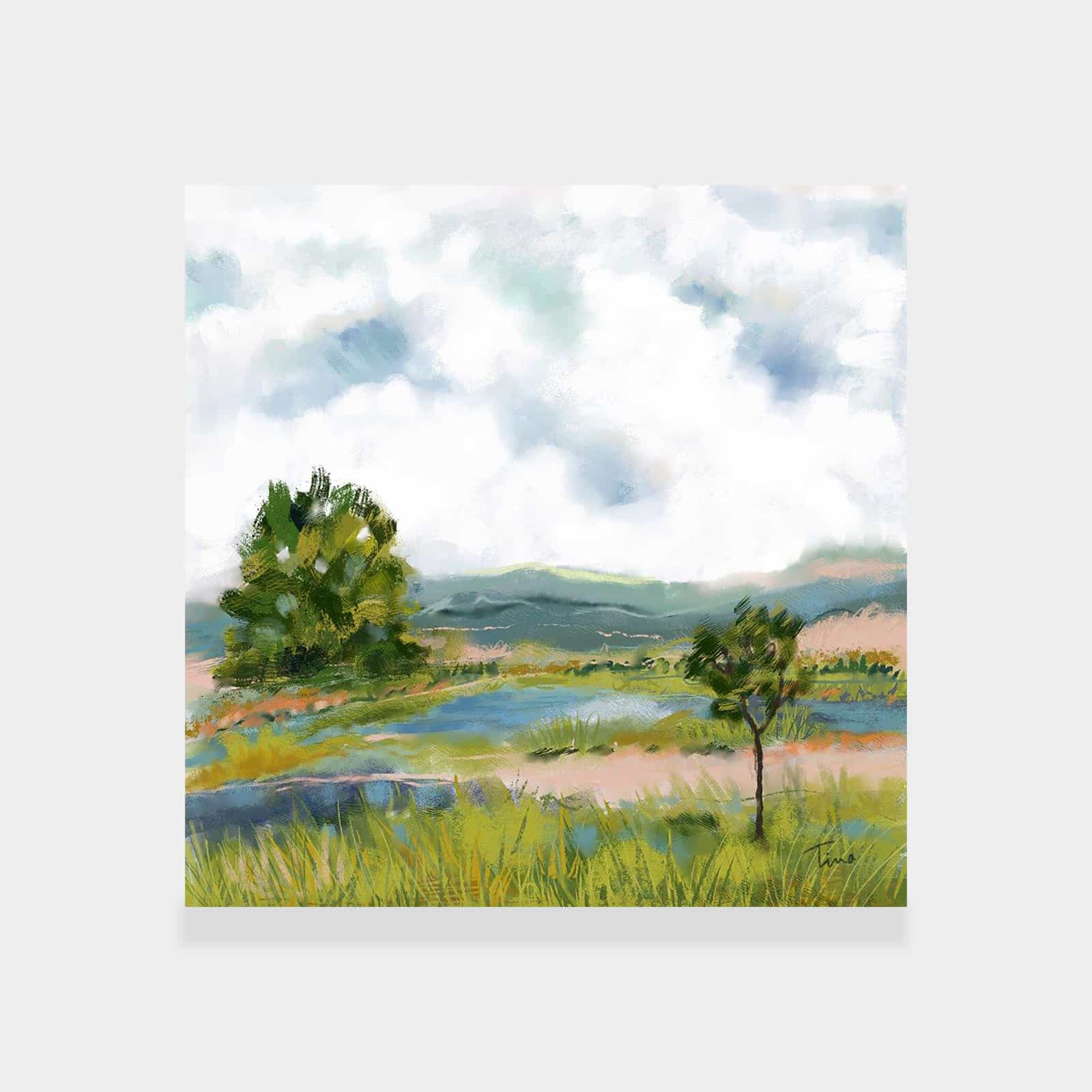 The artwork is beautiful. And beautifully framed. It’s the perfect size for over the fireplace and it really brightens the room. I’m very happy with it.