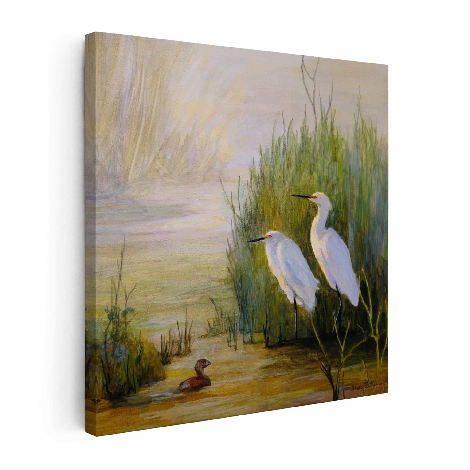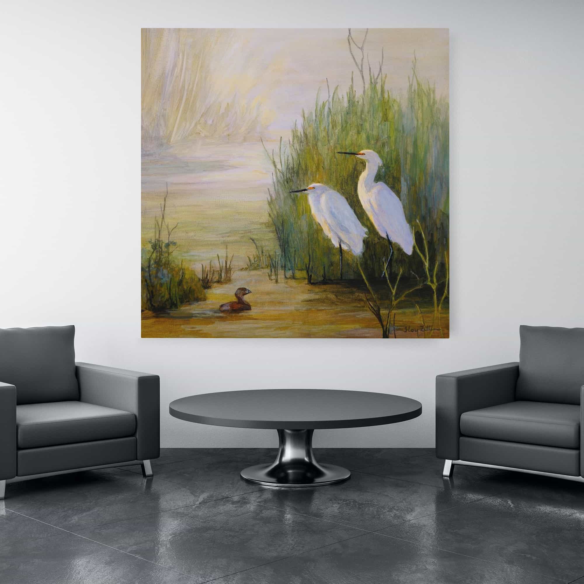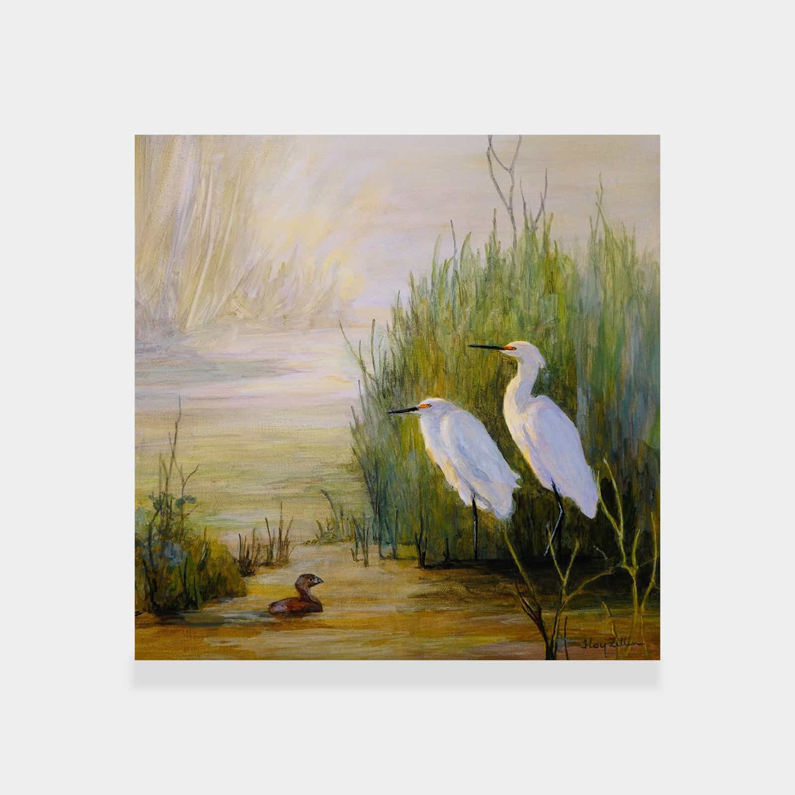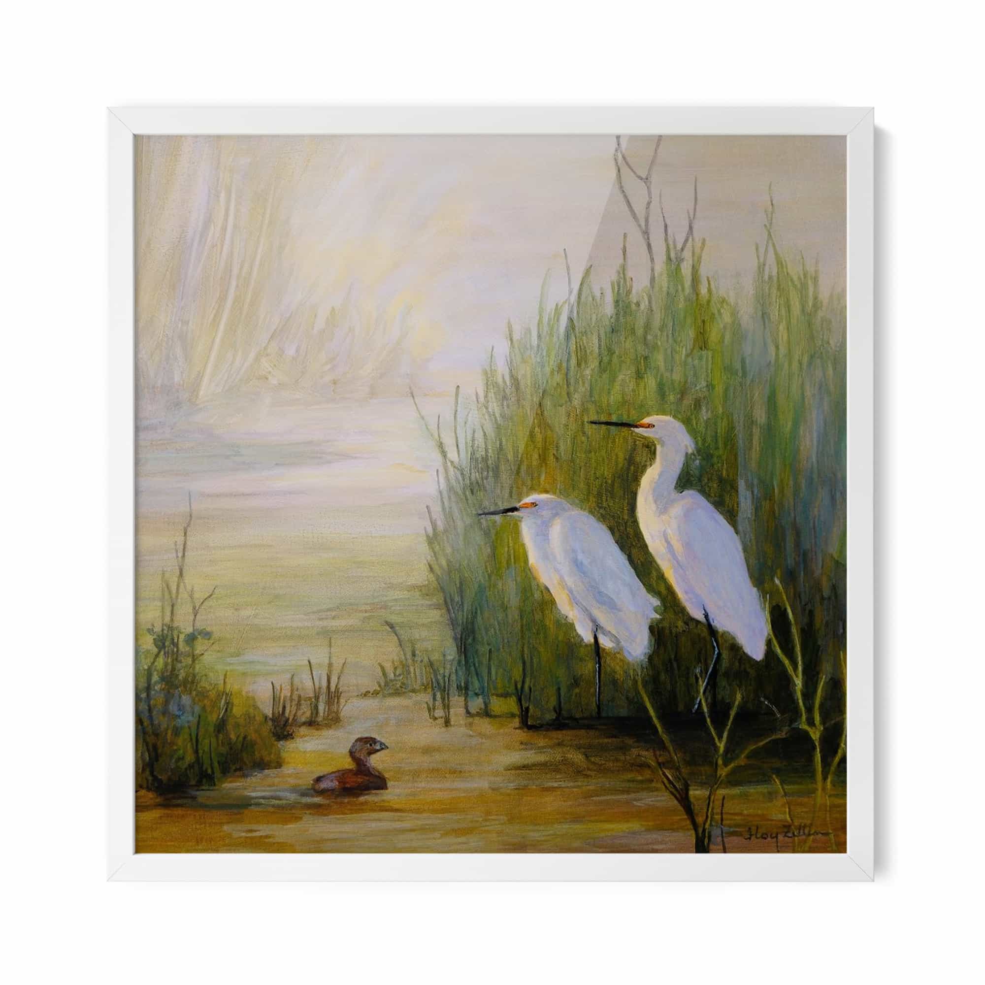 Egrets and Grebe