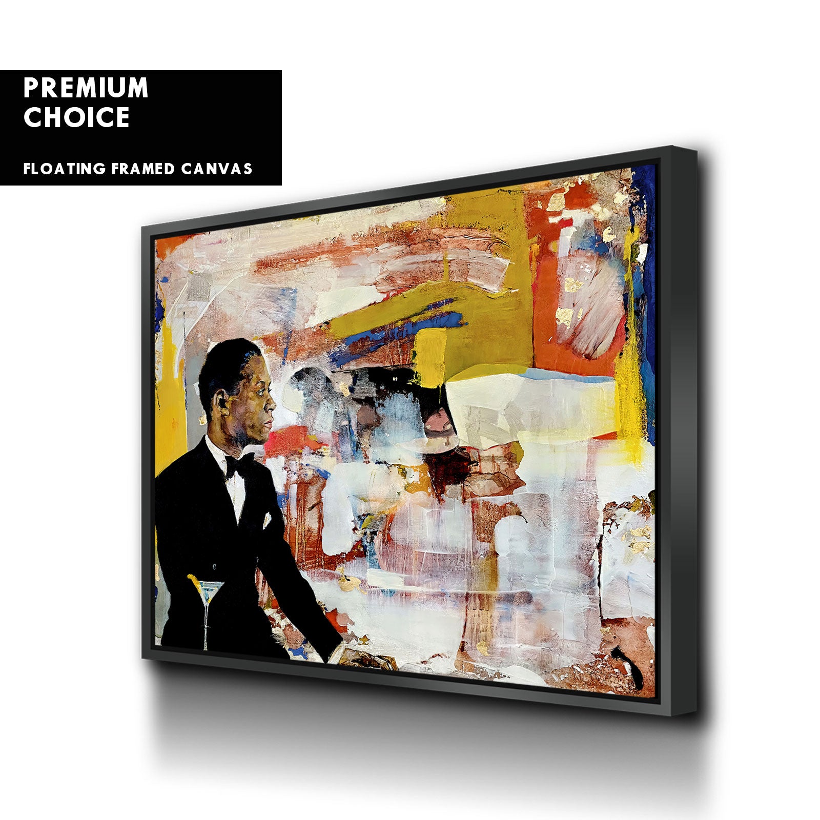 Our premium stretched canvas inserted perfectly in a Roma Moulding™ 100% real Pine Wood frame, with a professional matte black finish, and hanging hardware installed. Our Floater Frames are 5 times sanded & finished without toxins or chipping, for a museum quality framed artwork.
