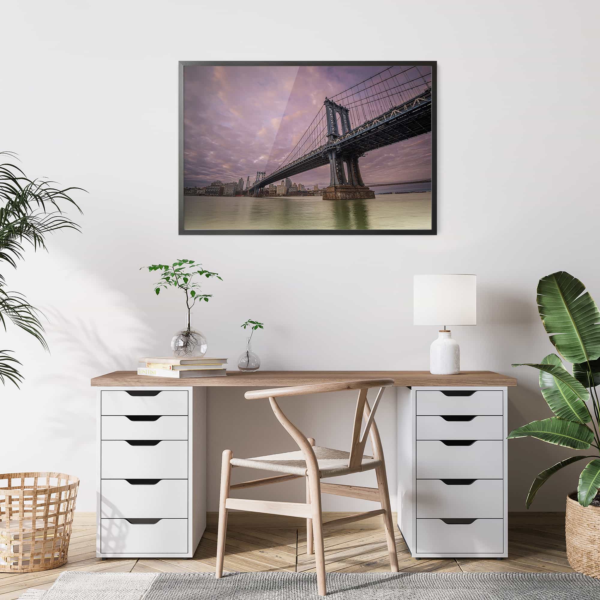 The highest quality Fine Art photo paper, in our 100% real wood frame with a professional matte black finish, and hanging hardware installed. Rubber bumpers also included to protect your wall, and make sure your framed print remains straight.