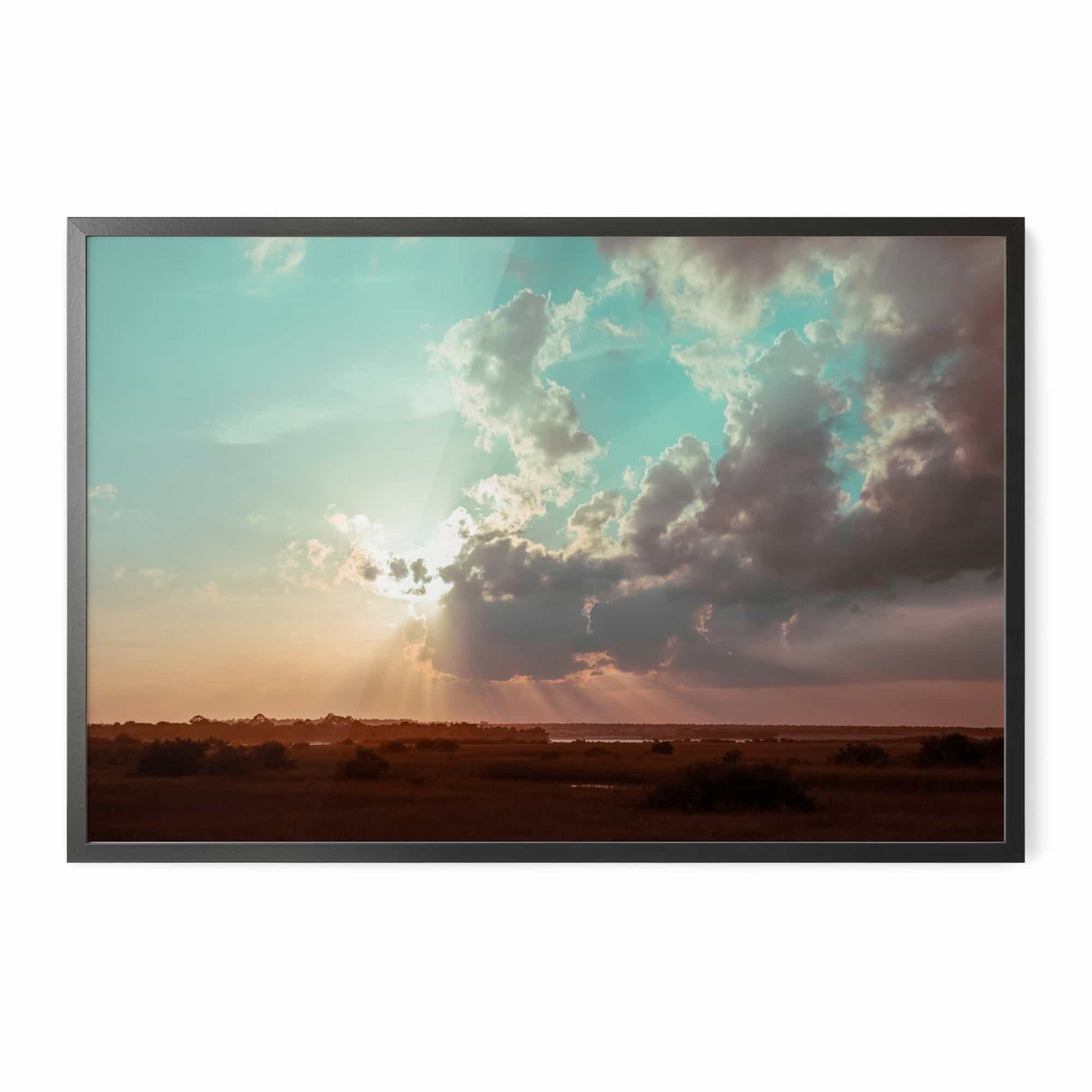 The highest quality Fine Art photo paper, in our 100% real wood frame with a professional matte black finish, and hanging hardware installed. Rubber bumpers also included to protect your wall, and make sure your framed print remains straight.