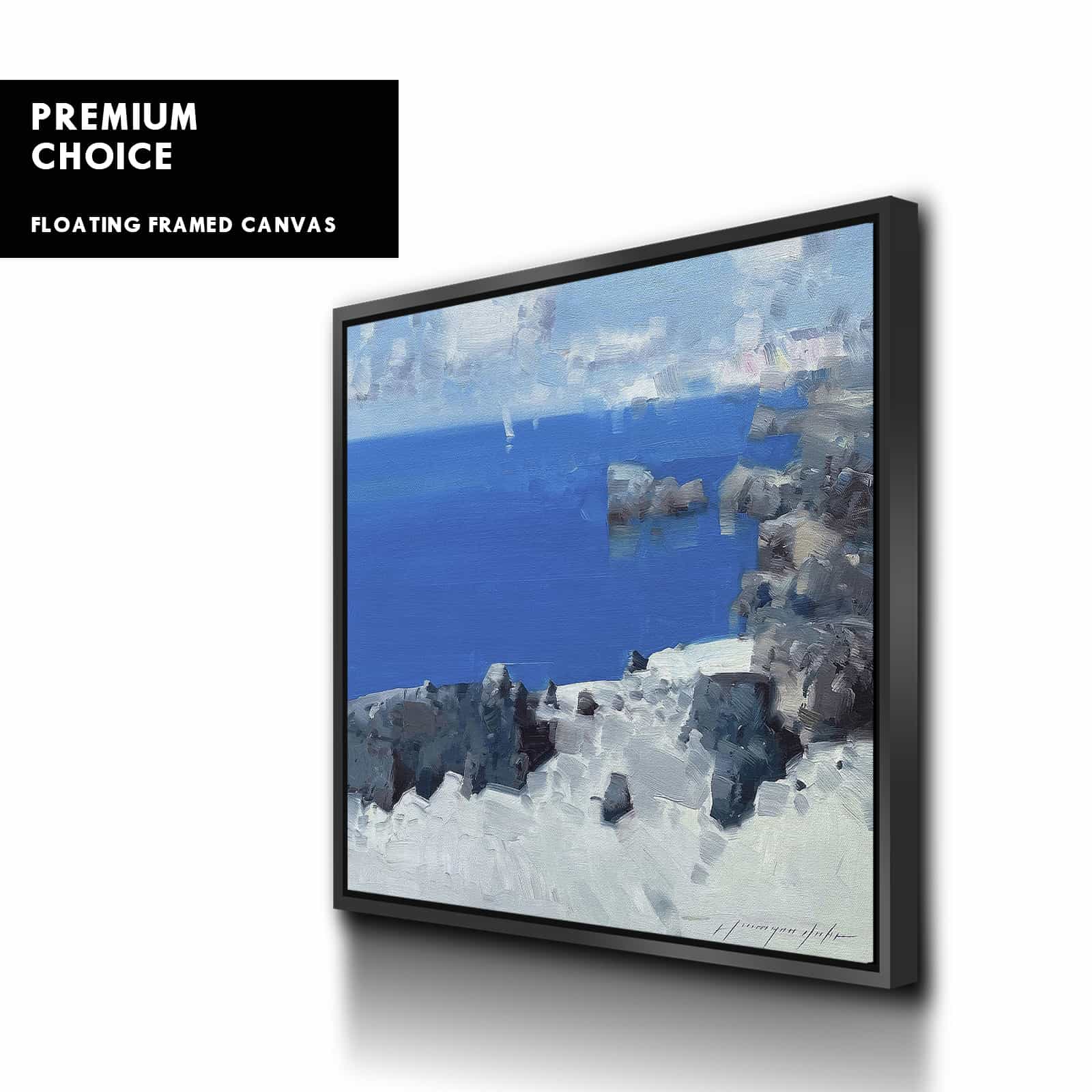 Our premium stretched canvas inserted perfectly in a Roma Moulding™ 100% real Pine Wood frame, with a professional matte black finish, and hanging hardware installed. Our Floater Frames are 5 times sanded & finished without toxins or chipping, for a museum quality framed artwork.
