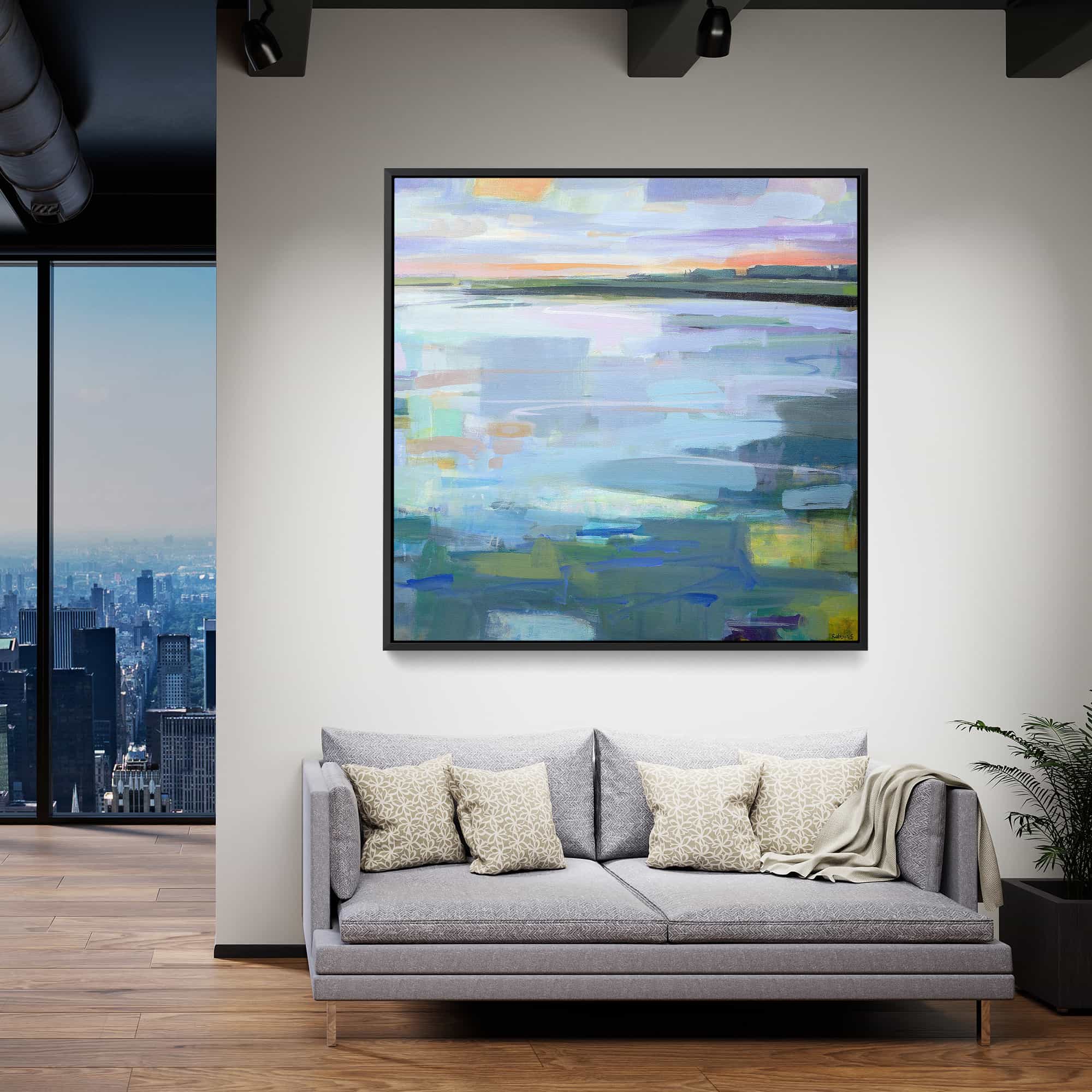 The artwork is beautiful. And beautifully framed. It’s the perfect size for over the fireplace and it really brightens the room. I’m very happy with it.