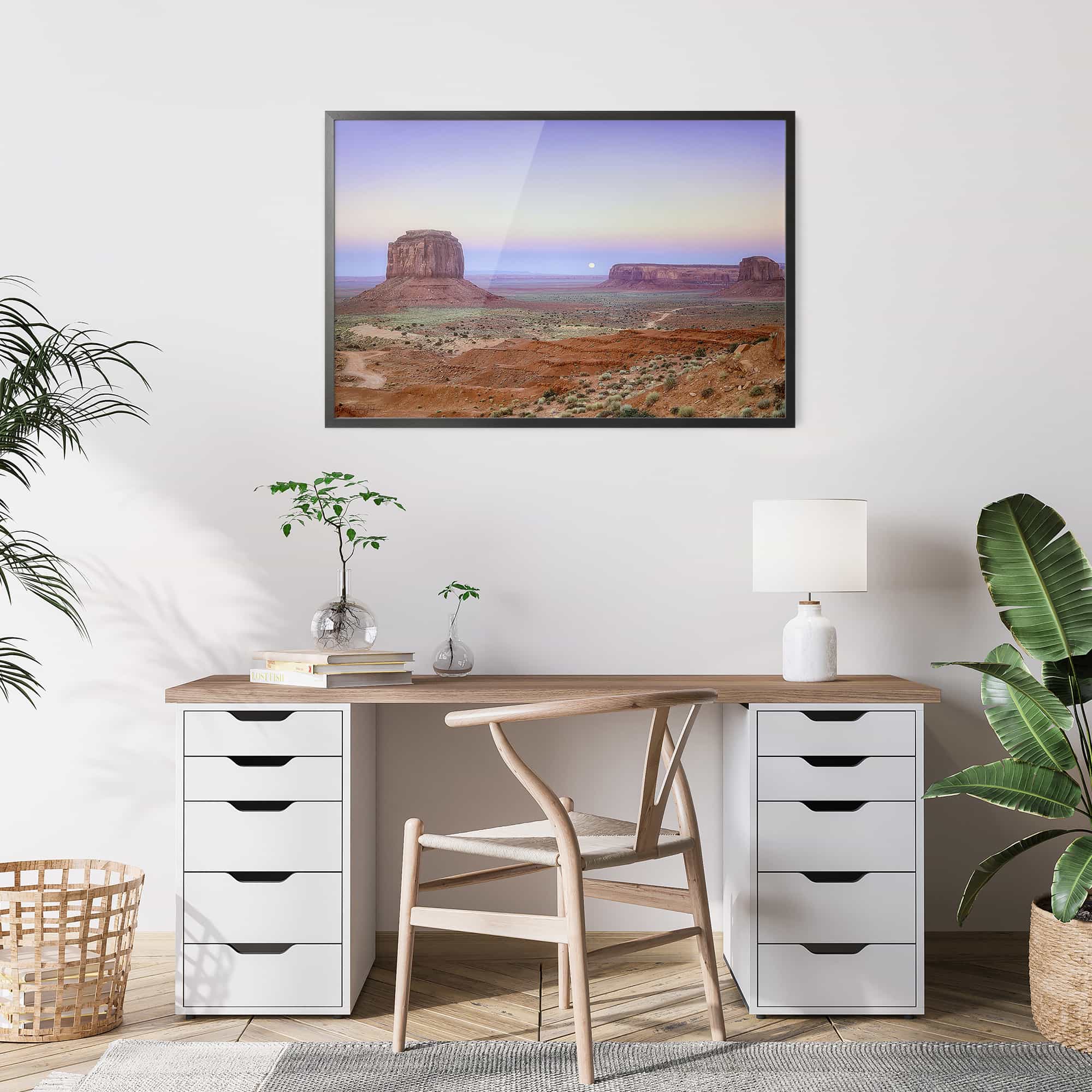 The highest quality Fine Art photo paper, in our 100% real wood frame with a professional matte black finish, and hanging hardware installed. Rubber bumpers also included to protect your wall, and make sure your framed print remains straight.