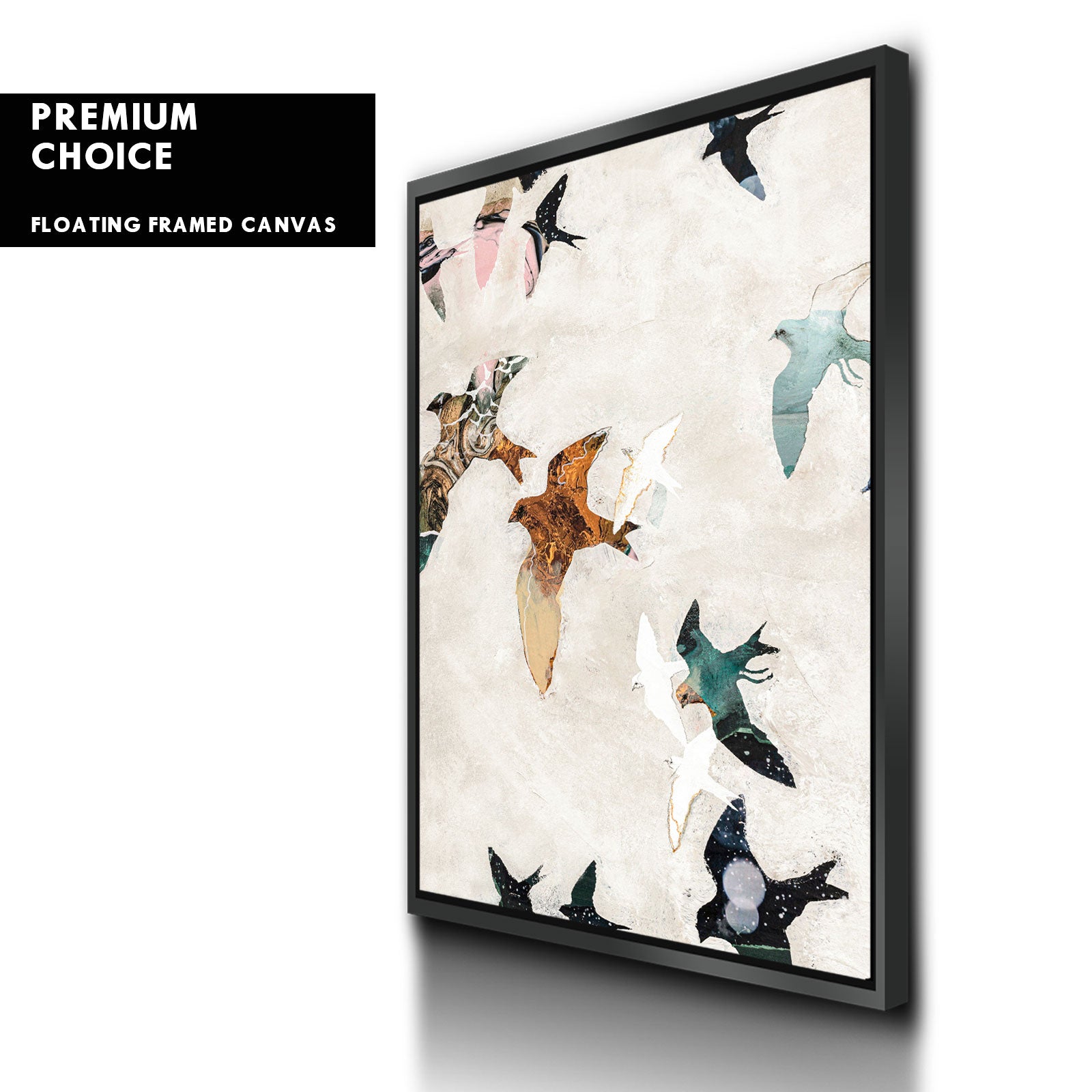 Our premium stretched canvas inserted perfectly in a Roma Moulding™ 100% real Pine Wood frame, with a professional matte black finish, and hanging hardware installed. Our Floater Frames are 5 times sanded & finished without toxins or chipping, for a museum quality framed artwork.