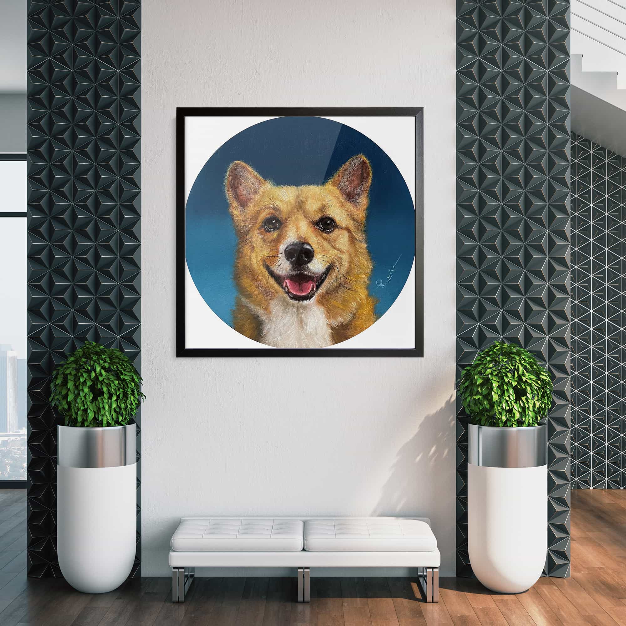 The artwork is beautiful. And beautifully framed. It’s the perfect size for over the fireplace and it really brightens the room. I’m very happy with it.