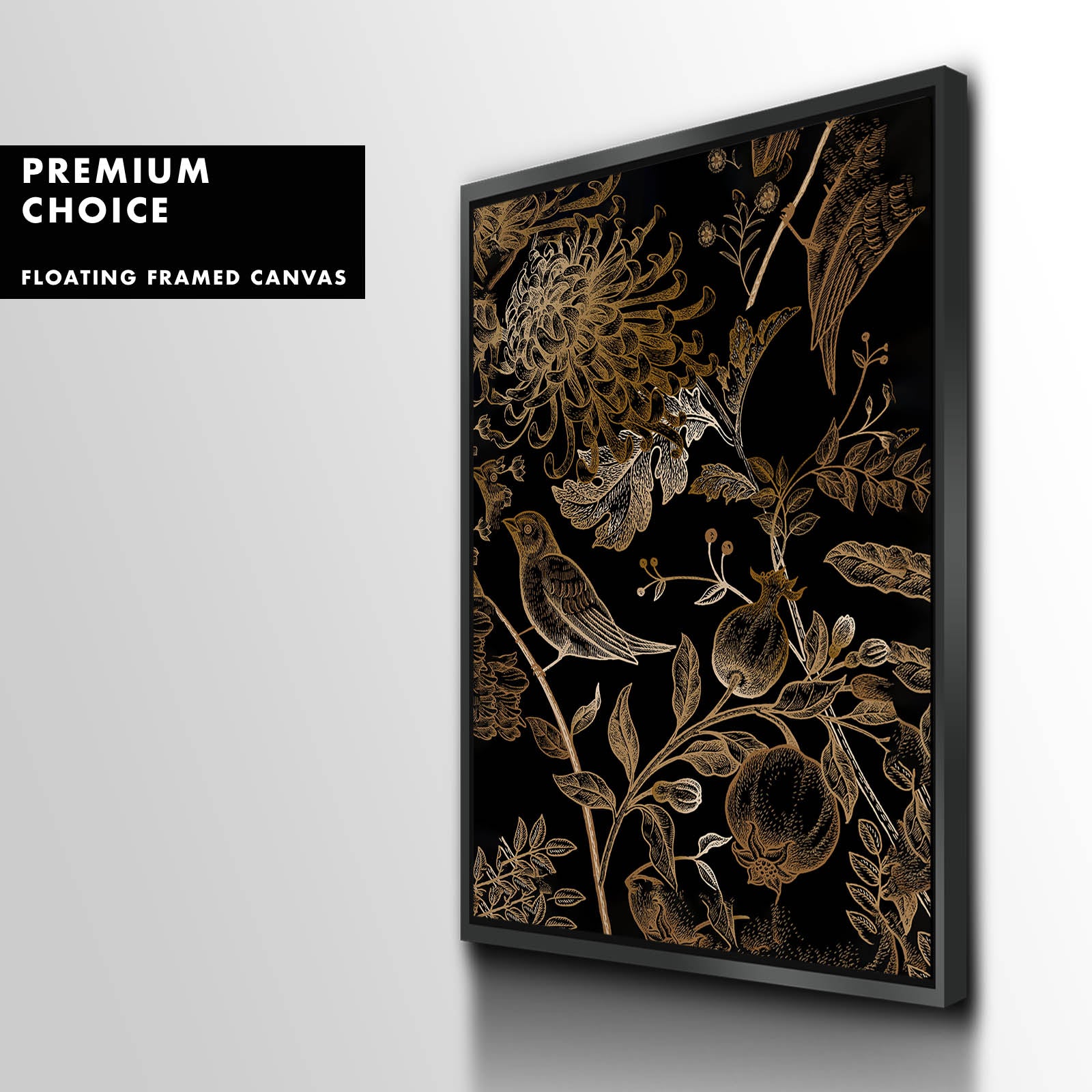 Our premium stretched canvas inserted perfectly in a Roma Moulding™ 100% real Pine Wood frame, with a professional matte black finish, and hanging hardware installed. Our Floater Frames are 5 times sanded & finished without toxins or chipping, for a museum quality framed artwork.