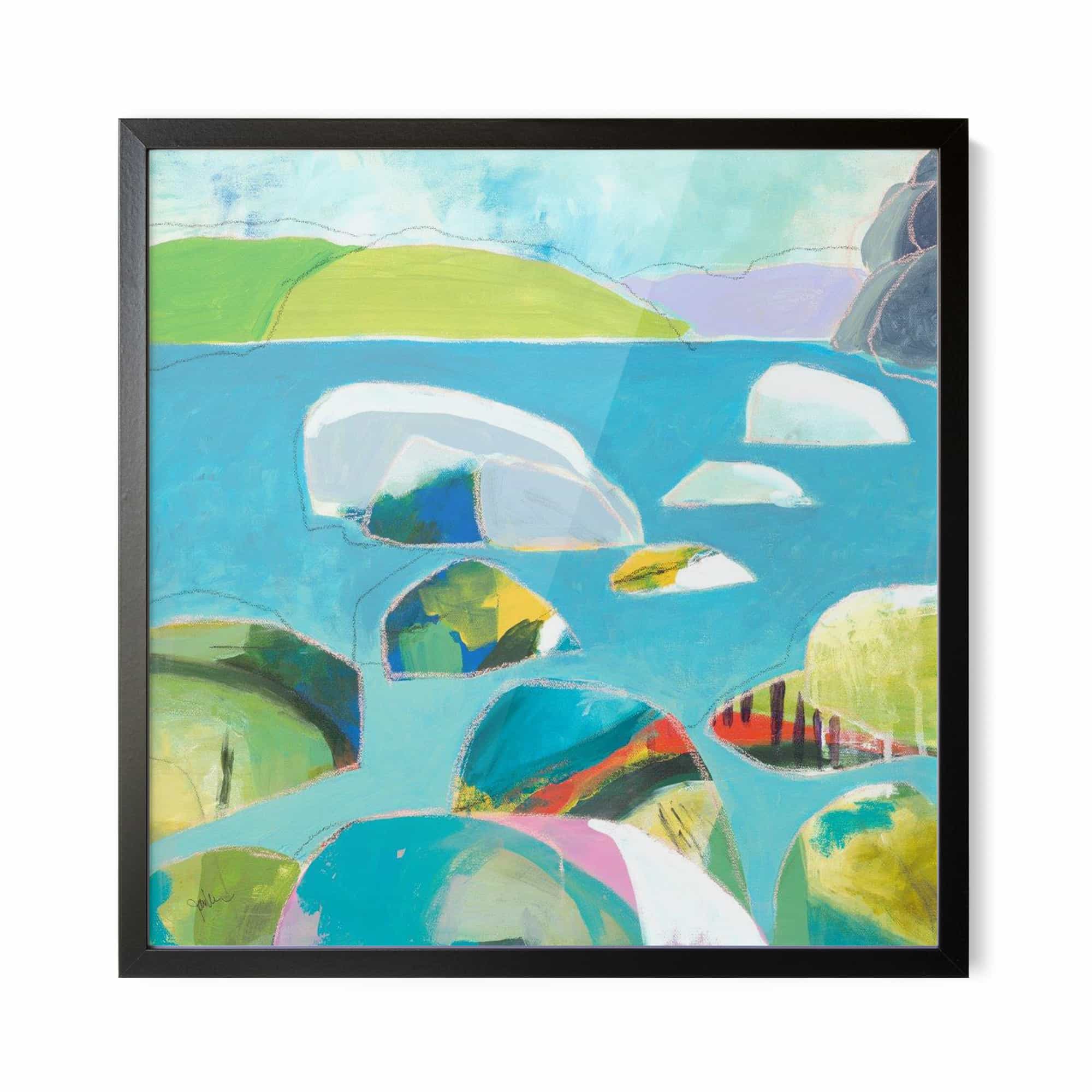 The artwork is beautiful. And beautifully framed. It’s the perfect size for over the fireplace and it really brightens the room. I’m very happy with it.