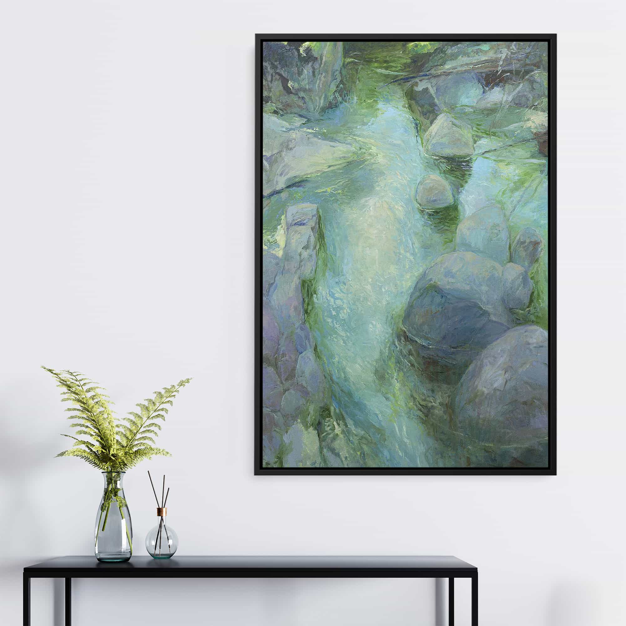 The artwork is beautiful. And beautifully framed. It’s the perfect size for over the fireplace and it really brightens the room. I’m very happy with it.