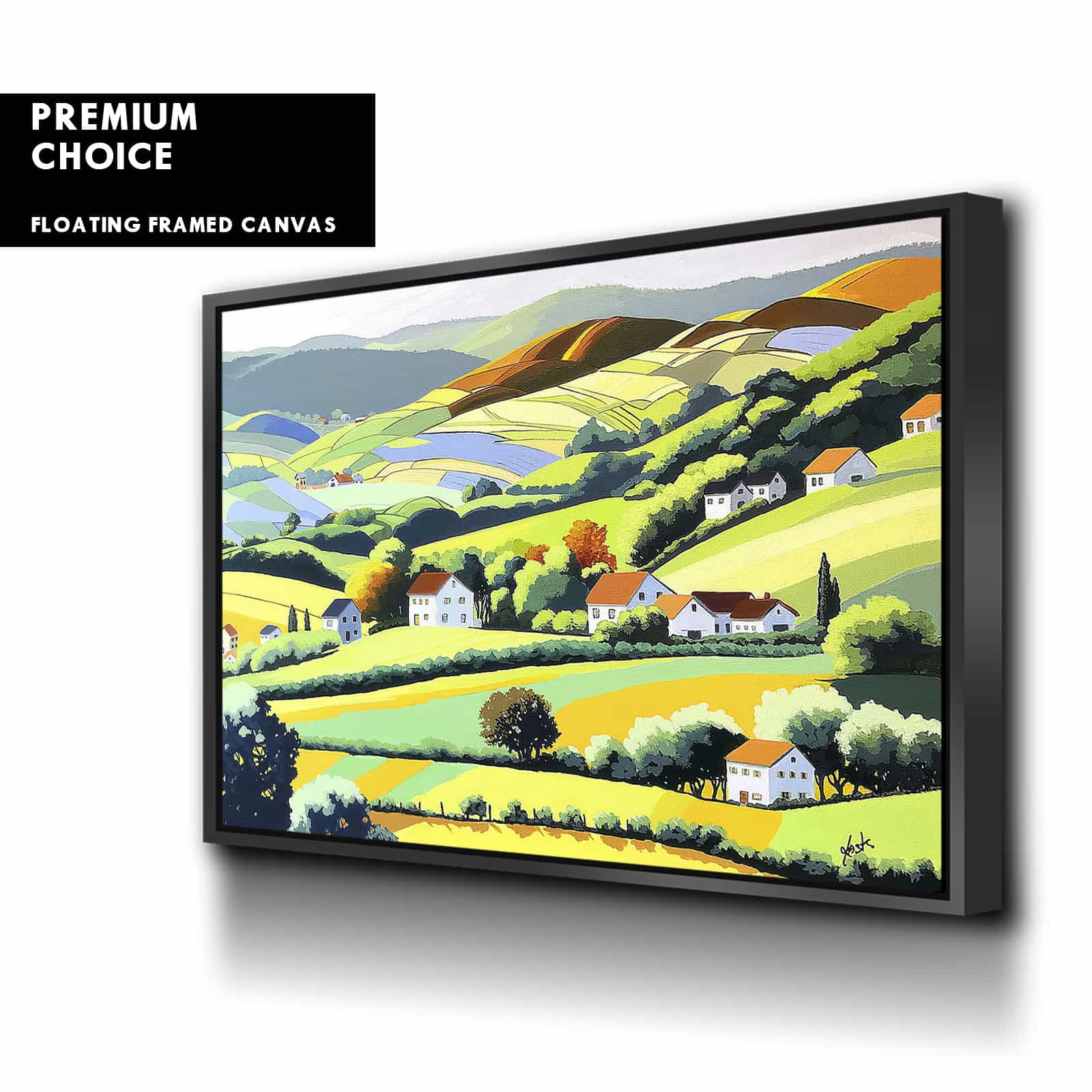 Our premium stretched canvas inserted perfectly in a Roma Moulding™ 100% real Pine Wood frame, with a professional matte black finish, and hanging hardware installed. Our Floater Frames are 5 times sanded & finished without toxins or chipping, for a museum quality framed artwork.