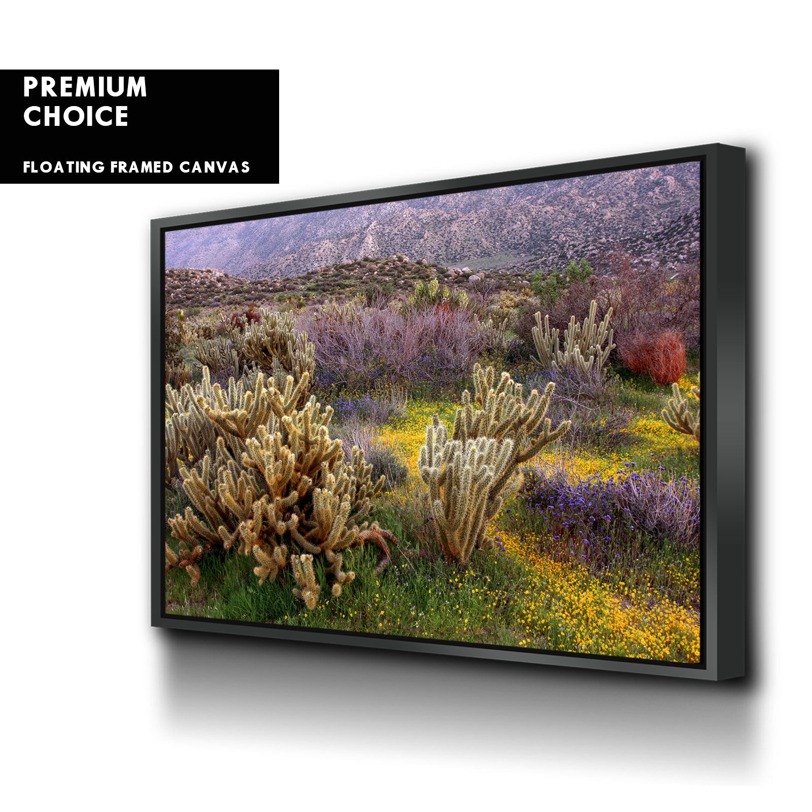 Our premium stretched canvas inserted perfectly in a Roma Moulding™ 100% real Pine Wood frame, with a professional matte black finish, and hanging hardware installed. Our Floater Frames are 5 times sanded & finished without toxins or chipping, for a museum quality framed artwork.