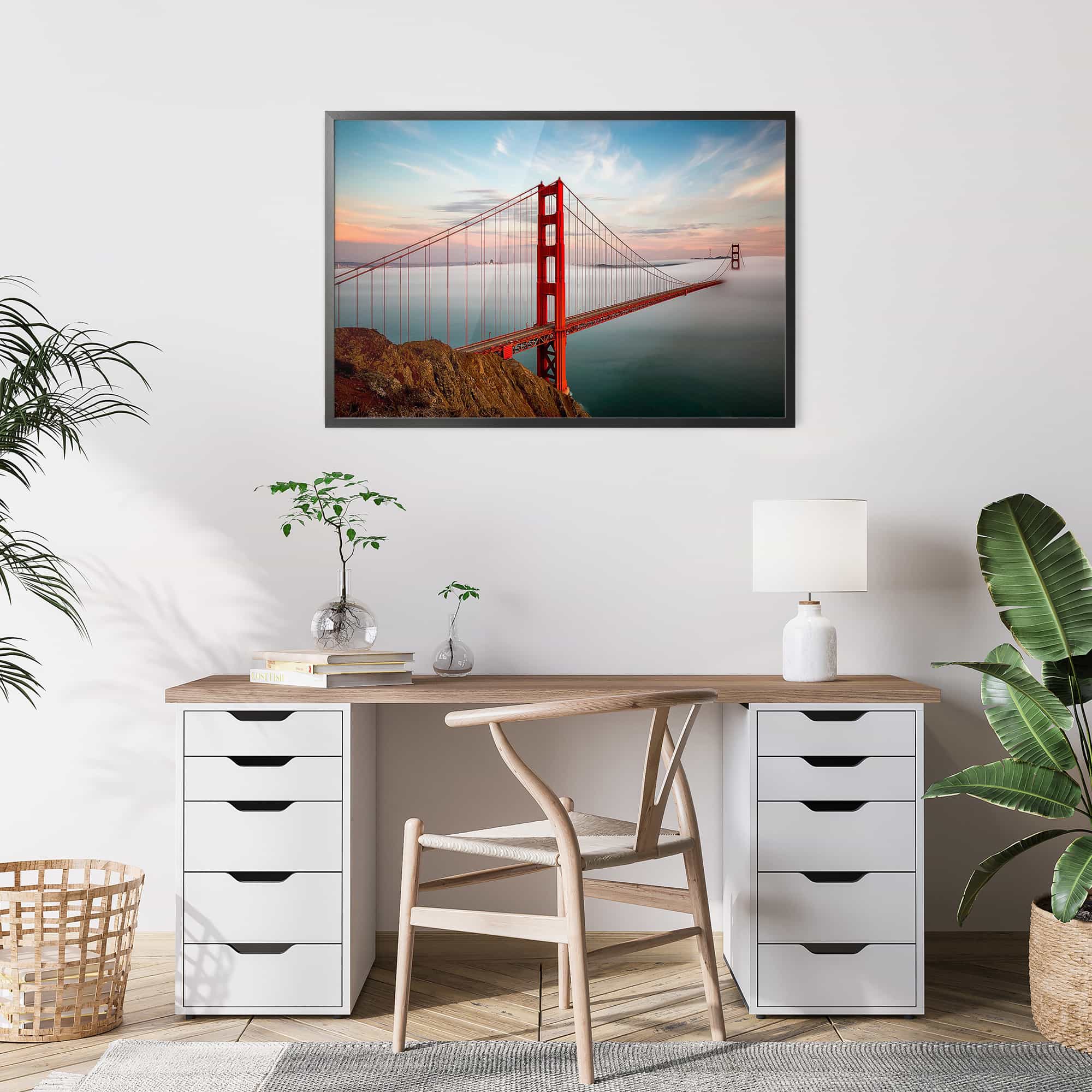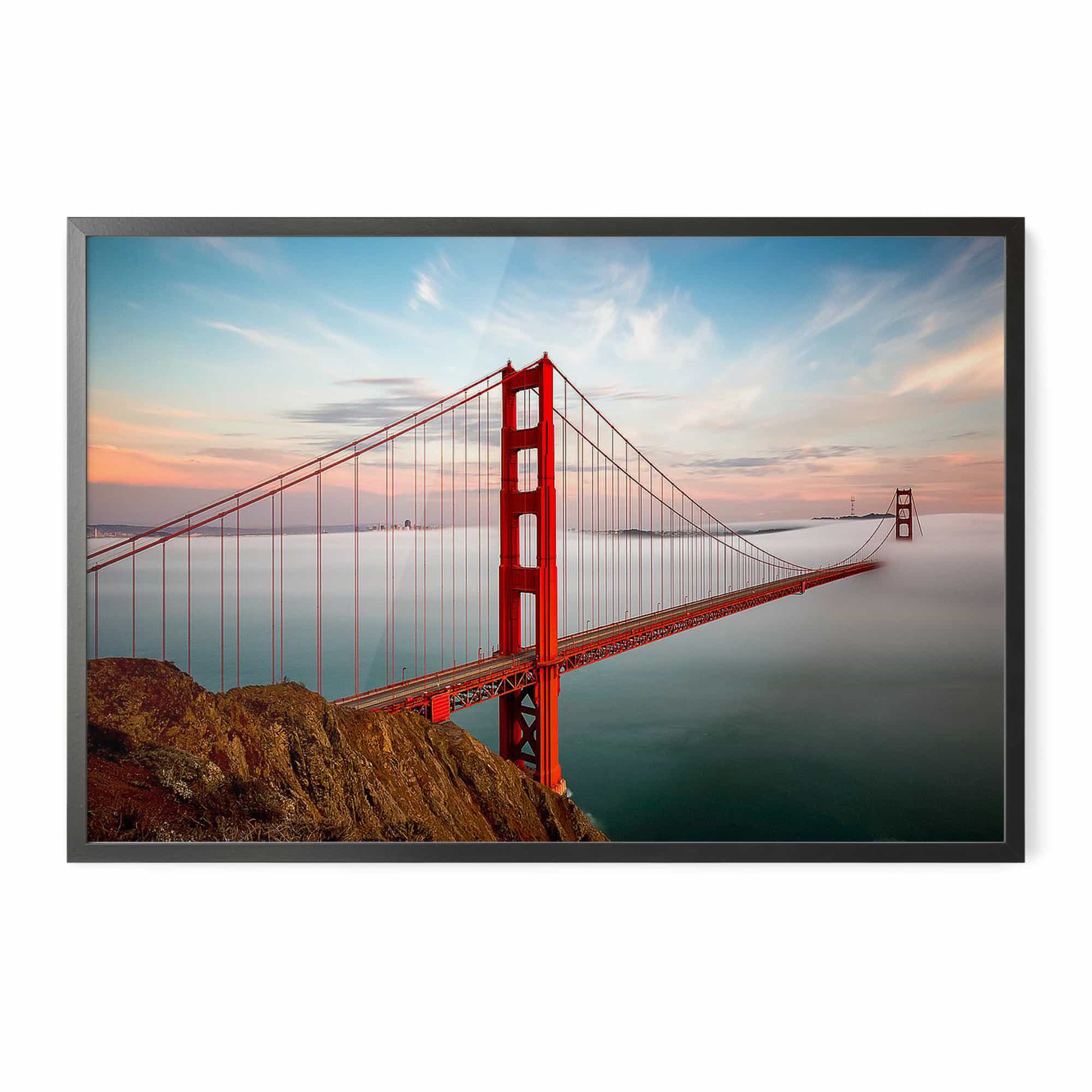 The highest quality Fine Art photo paper, in our 100% real wood frame with a professional matte black finish, and hanging hardware installed. Rubber bumpers also included to protect your wall, and make sure your framed print remains straight.