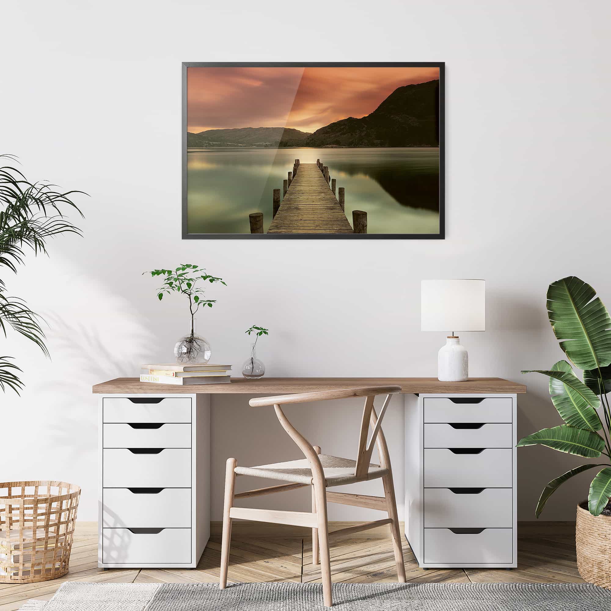 The highest quality Fine Art photo paper, in our 100% real wood frame with a professional matte black finish, and hanging hardware installed. Rubber bumpers also included to protect your wall, and make sure your framed print remains straight.