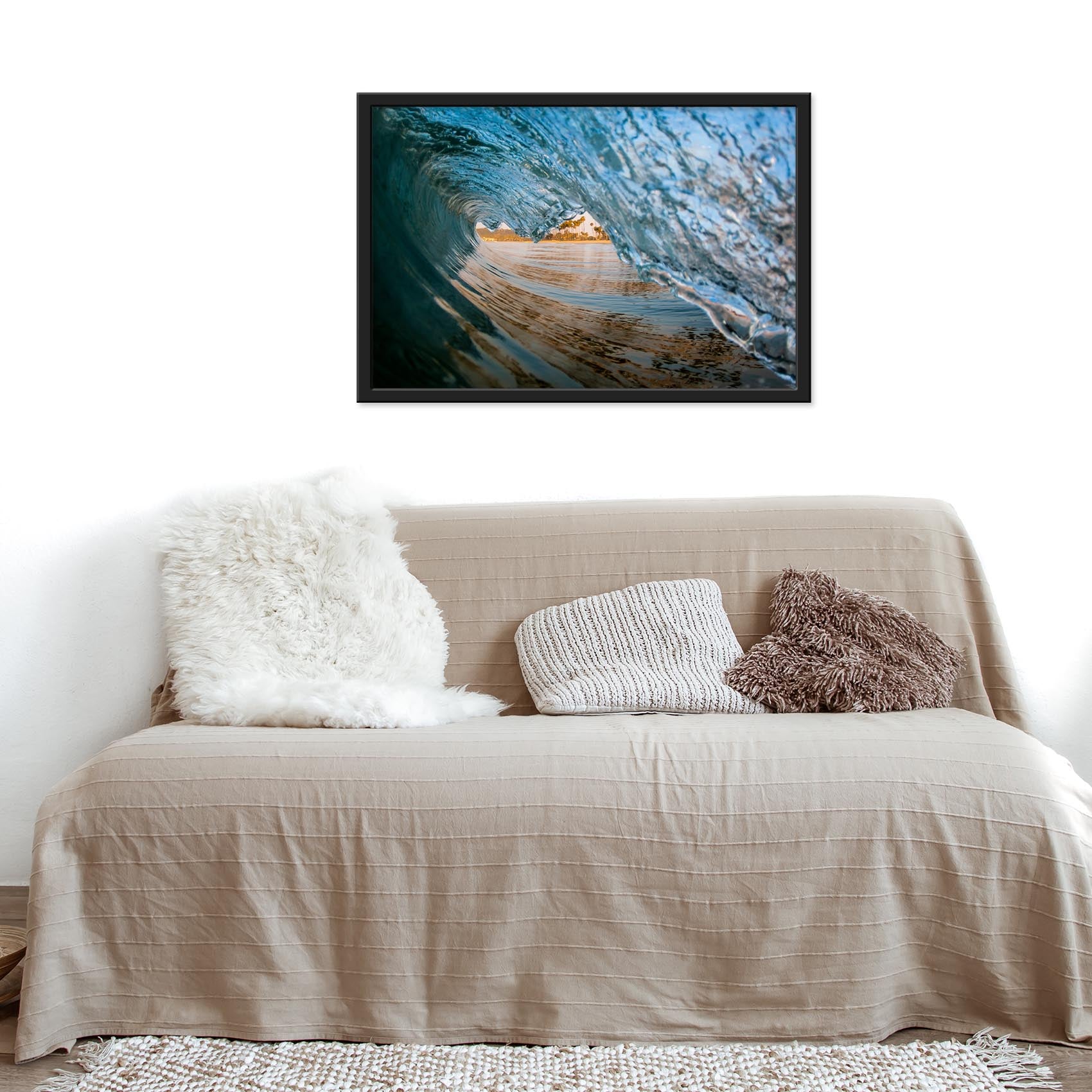 Our premium stretched canvas inserted perfectly in a Roma Moulding™ 100% real Pine Wood frame, with a professional matte black finish, and hanging hardware installed. Our Floater Frames are 5 times sanded & finished without toxins or chipping, for a museum quality framed artwork.