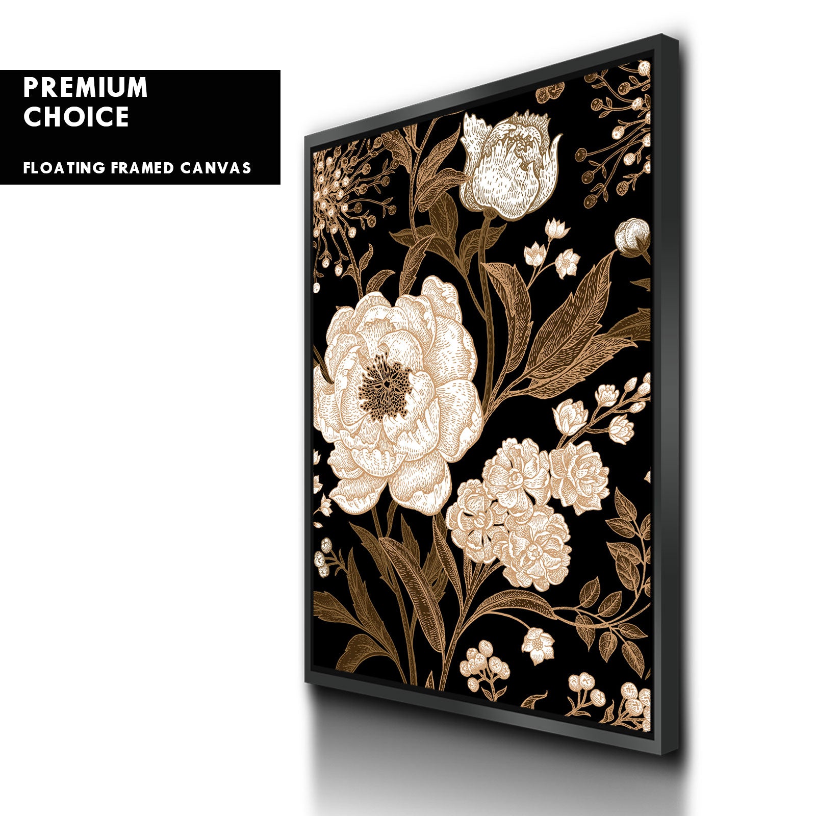 Our premium stretched canvas inserted perfectly in a Roma Moulding™ 100% real Pine Wood frame, with a professional matte black finish, and hanging hardware installed. Our Floater Frames are 5 times sanded & finished without toxins or chipping, for a museum quality framed artwork.